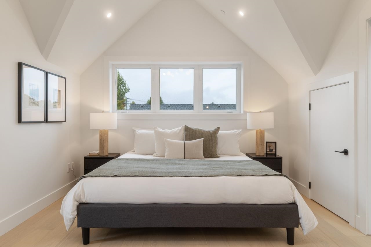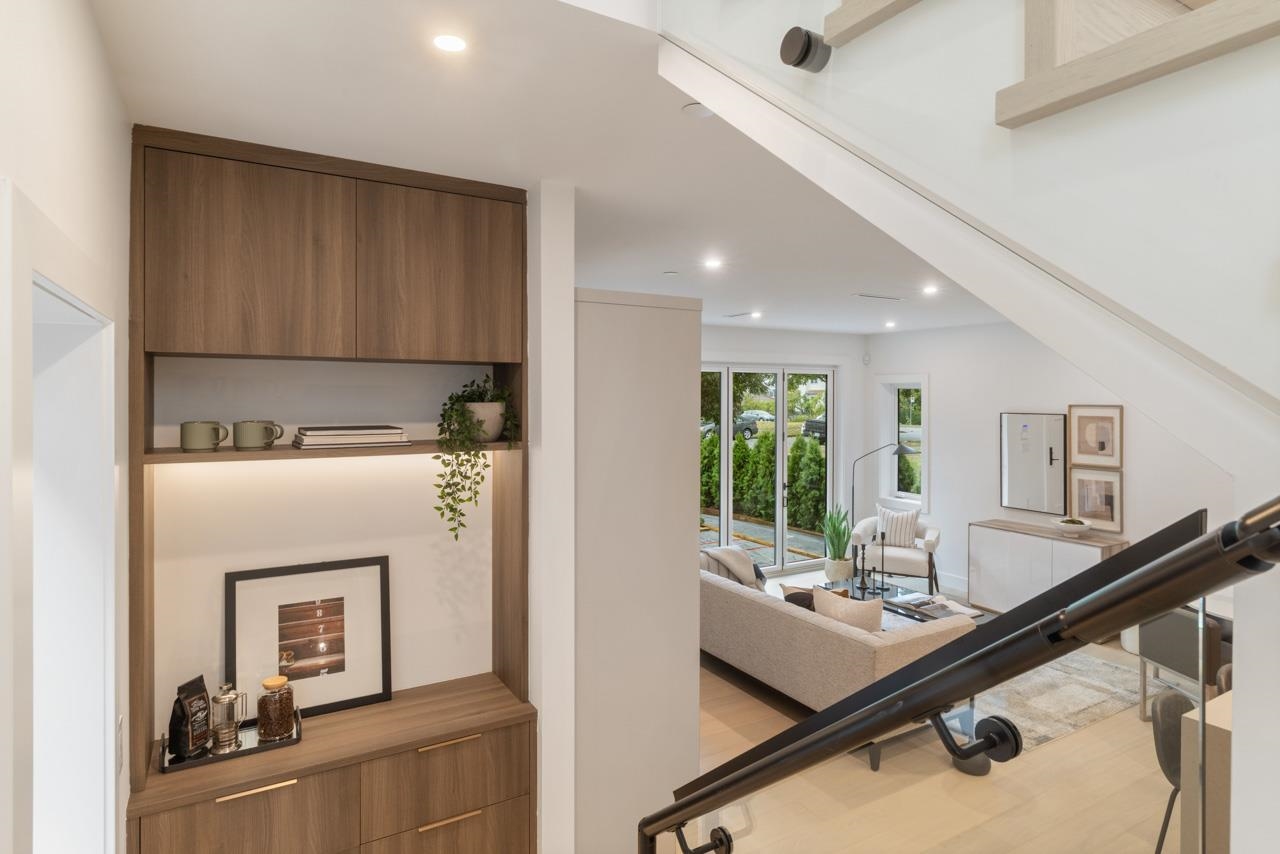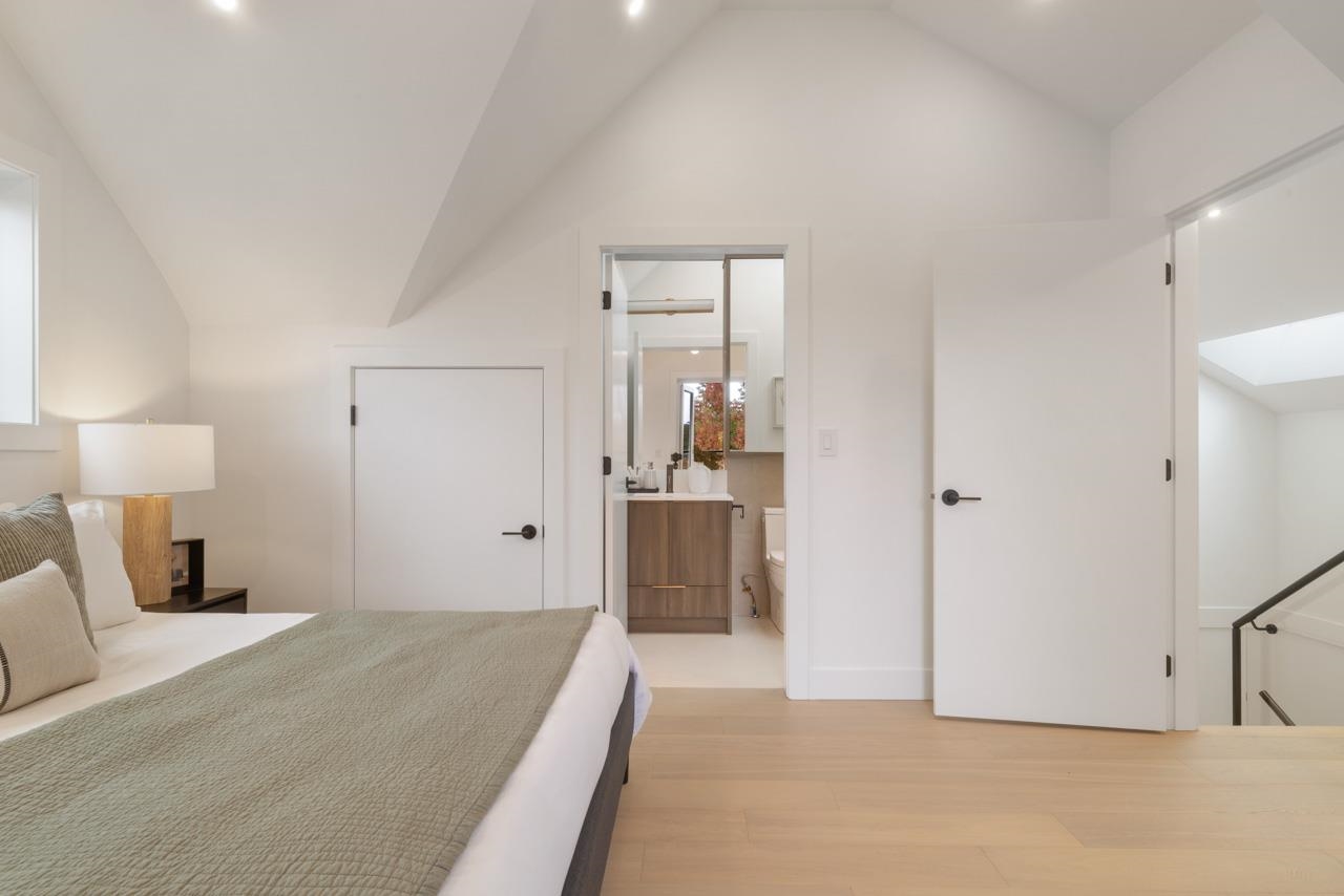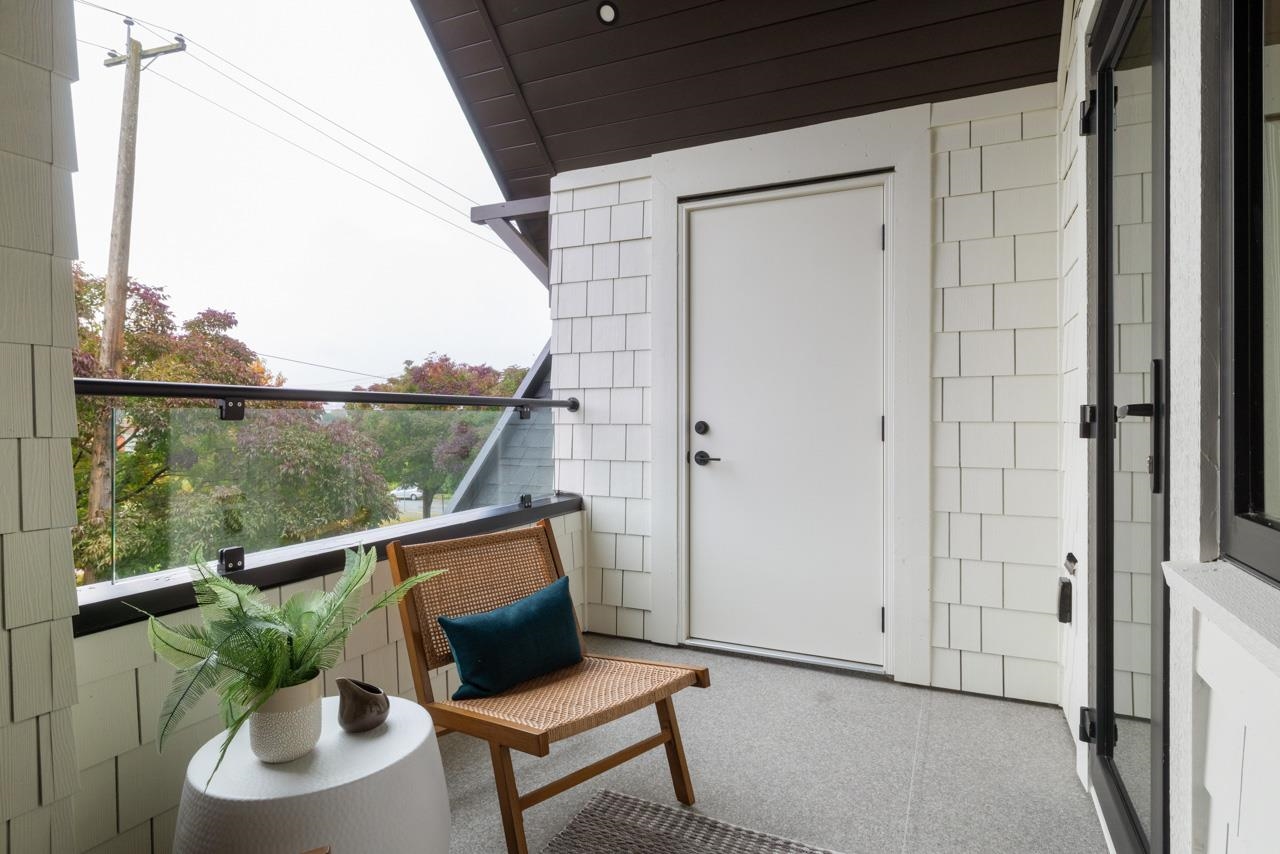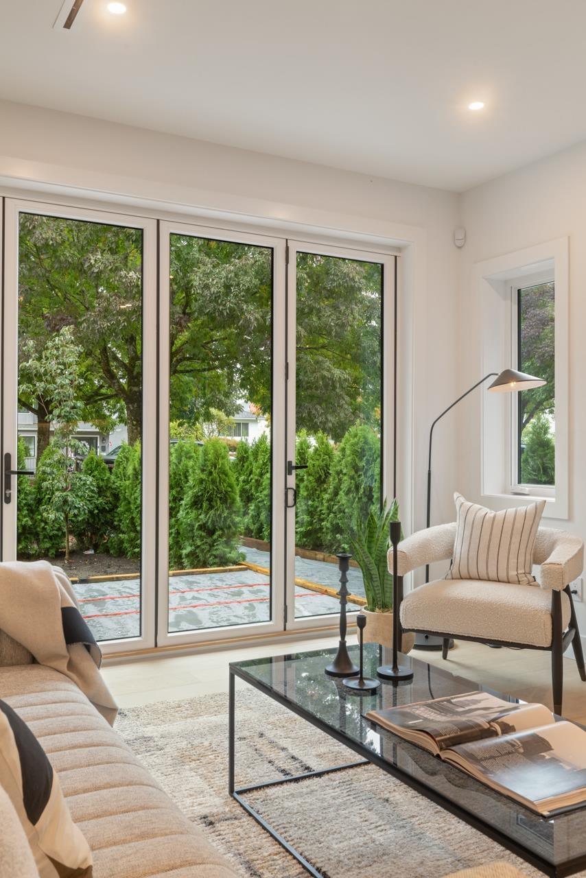 This exceptionally well built and beautifully finished front half duplex offers the perfect blend of style, comfort and function. The open main floor showcases a stunning kitchen with Fisher & Paykel integrated appliances, gas range and large island. Eclipse doors seamlessly connect the living space to a private patio and landscaped front yard. Upstairs features 3 bedrooms and 2 bathrooms, including a serene primary with ensuite. The top floor is a flexible retreat, ideal as a luxe primary suite with spa-like ensuite and covered balcony or perhaps a media room, or home office. Thoughtful details throughout like custom millwork & undersurface lighting. All in a popular East Van location close to schools, parks, and transit. Your opportunity to own Renfrew's nicest front duplex!