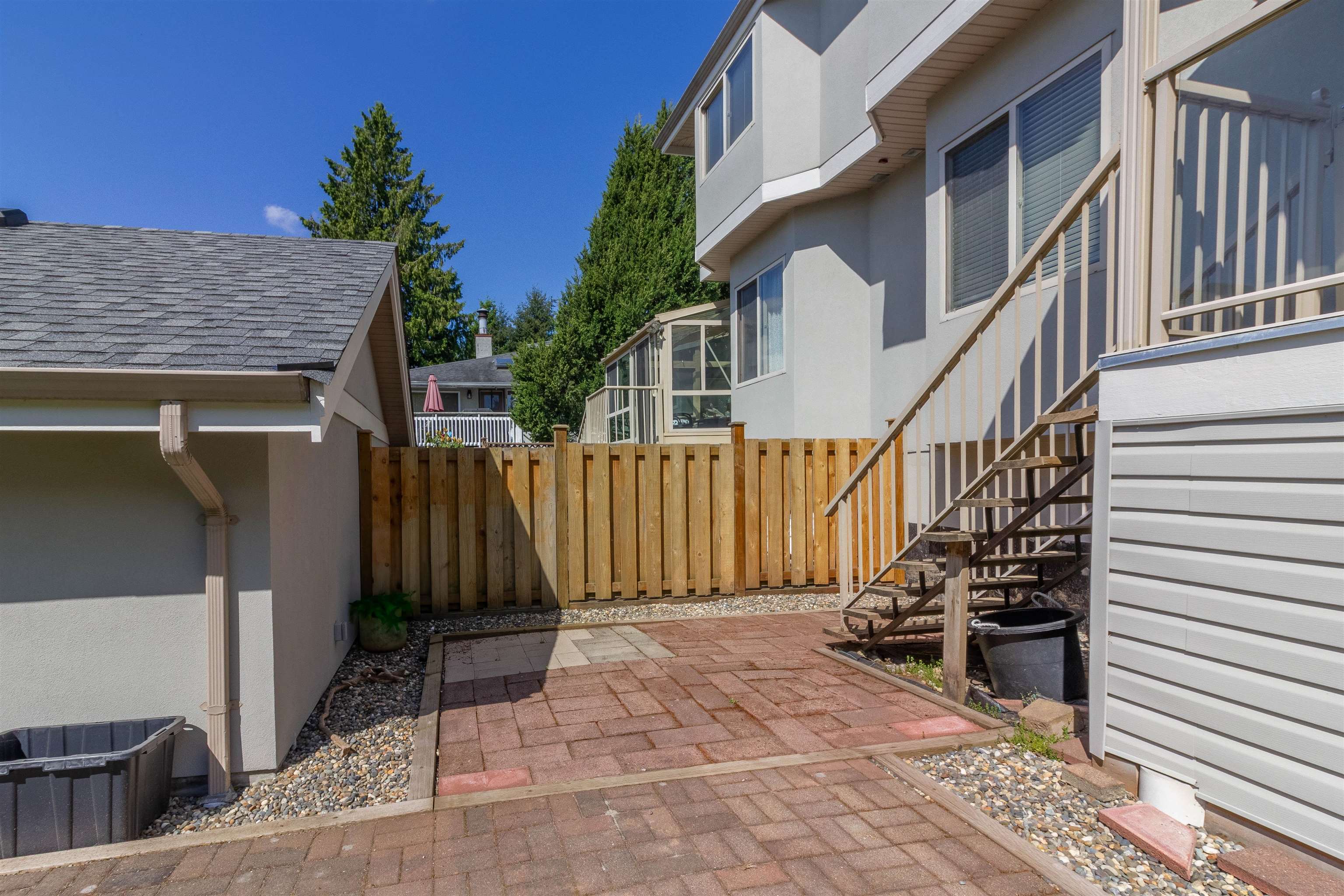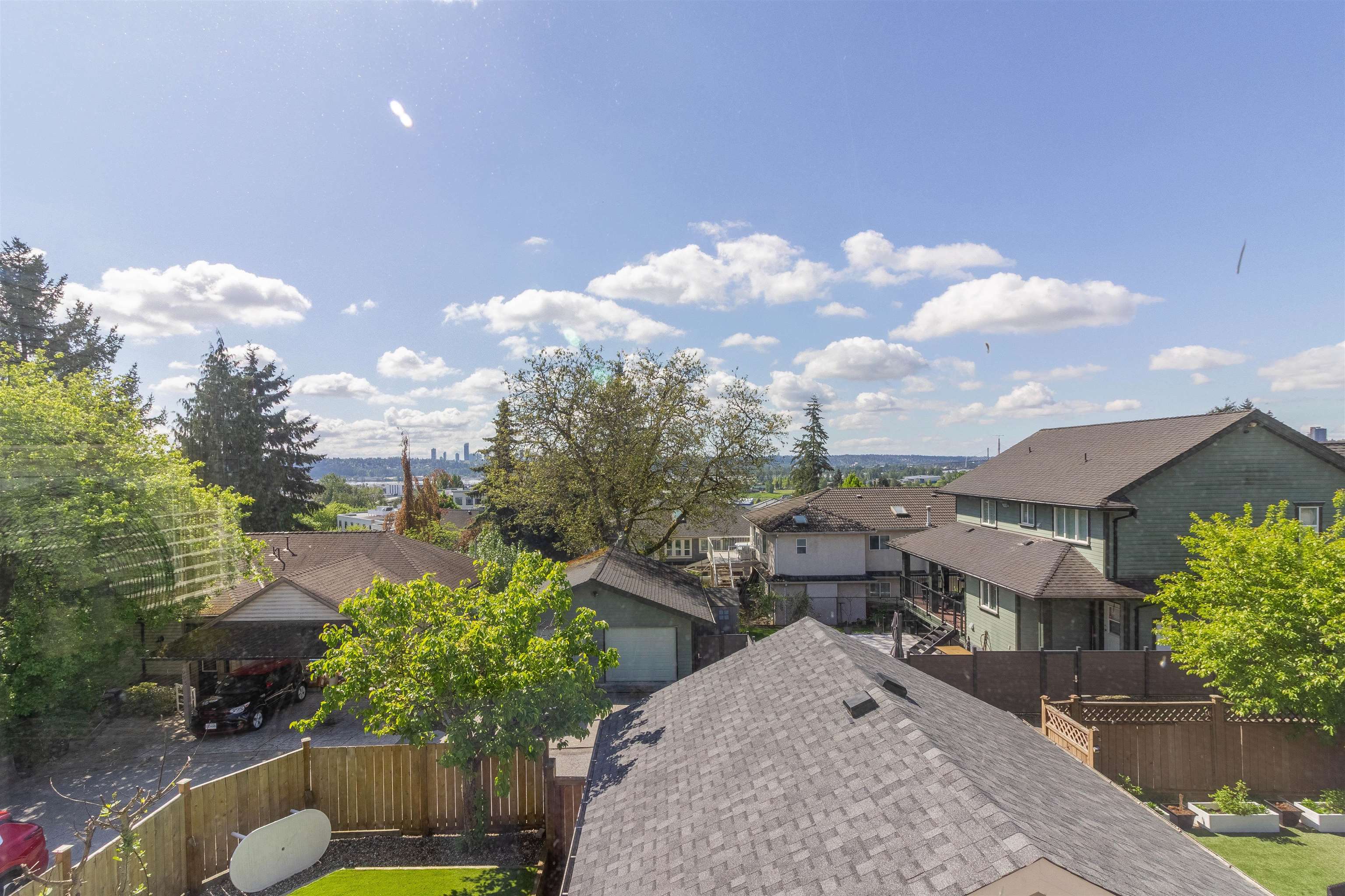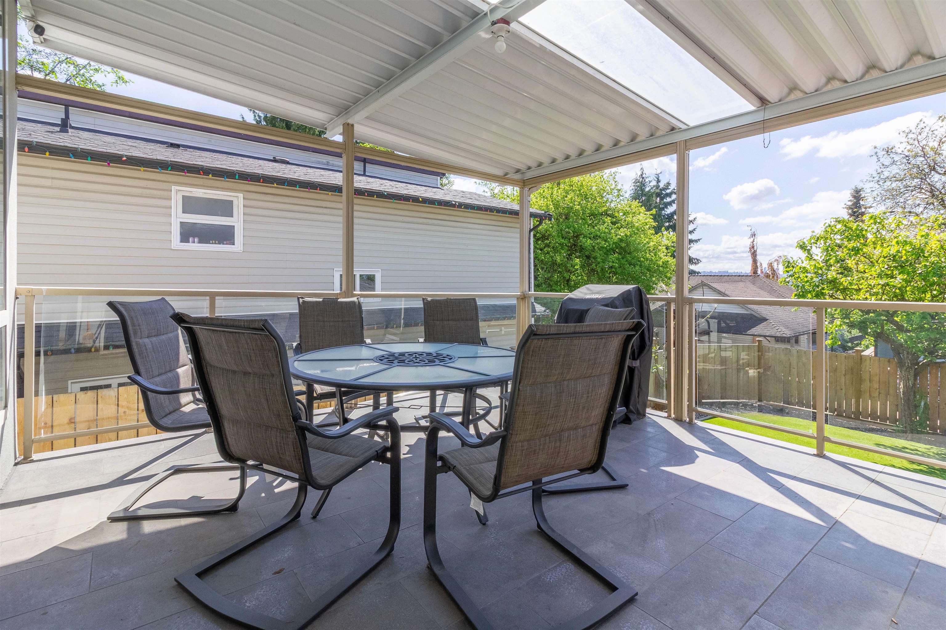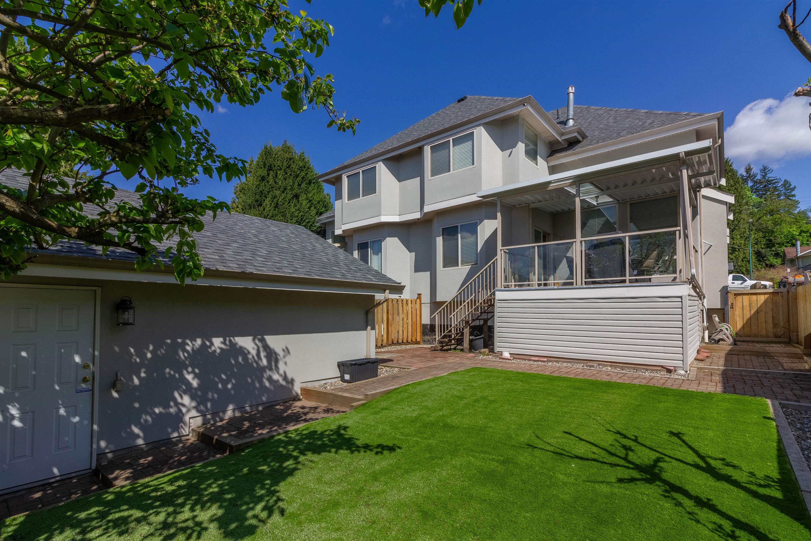 Welcome to this beautifully updated home with views of the Fraser River, nestled in the heart of Central Coquitlam. Step into a marble-tiled foyer under a bright skylight, leading to an impressive living room with 19' vaulted ceiling and a cozy gas fireplace. Flex space is ideal for home office or secondary lounge. Updated gourmet kitchen opens into the dining room. Enjoy outdoor living with both front and back covered decks, perfect for year-round enjoyment. Primary suite includes its own fireplace and a spa-inspired ensuite. Wake up each morning to beautiful southern views. Roof has been updated recently. Private fenced backyard is updated with new artificial turf and a covered patio with ample space for gatherings. Easy access to Lougheed Mall and North Road amenities.