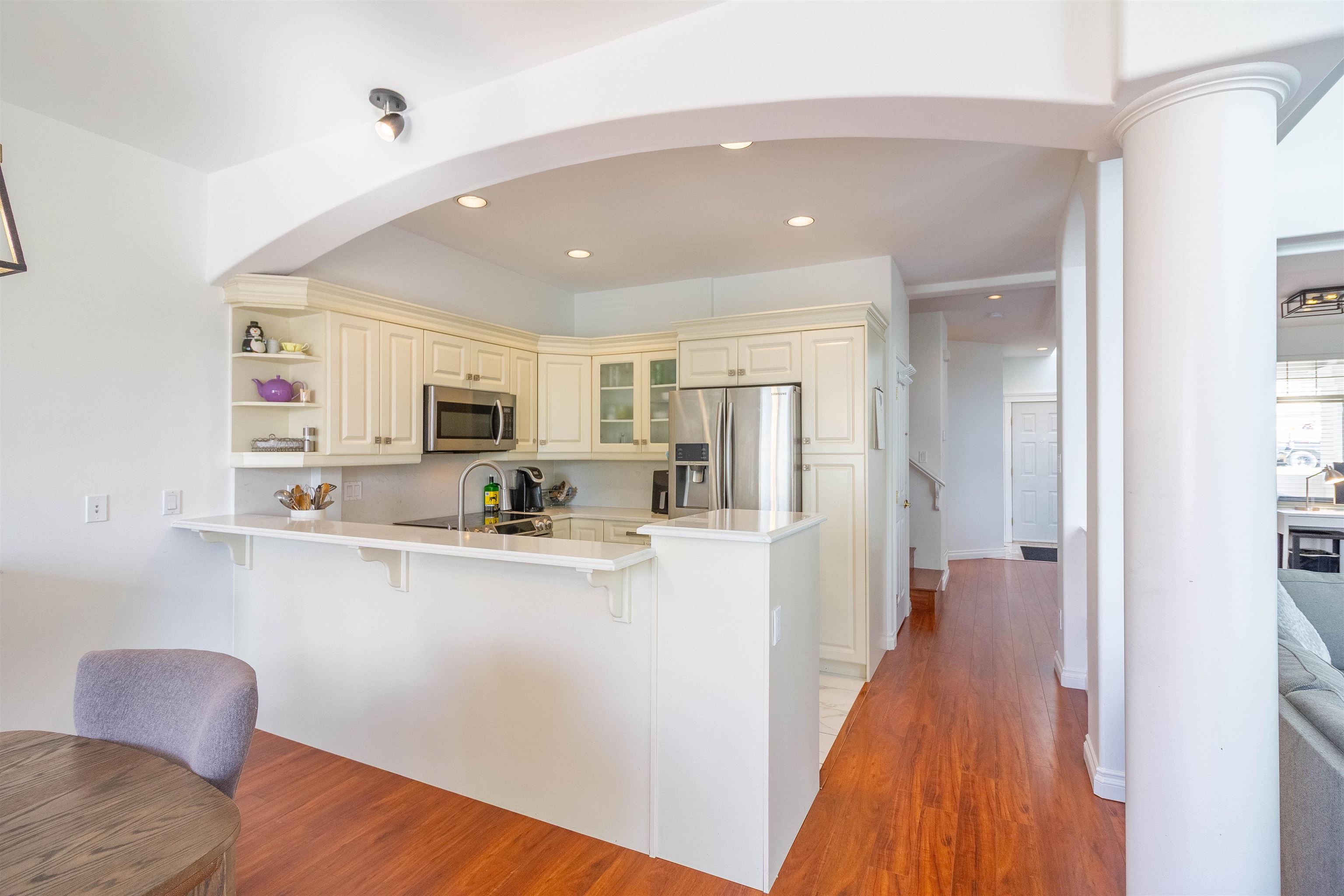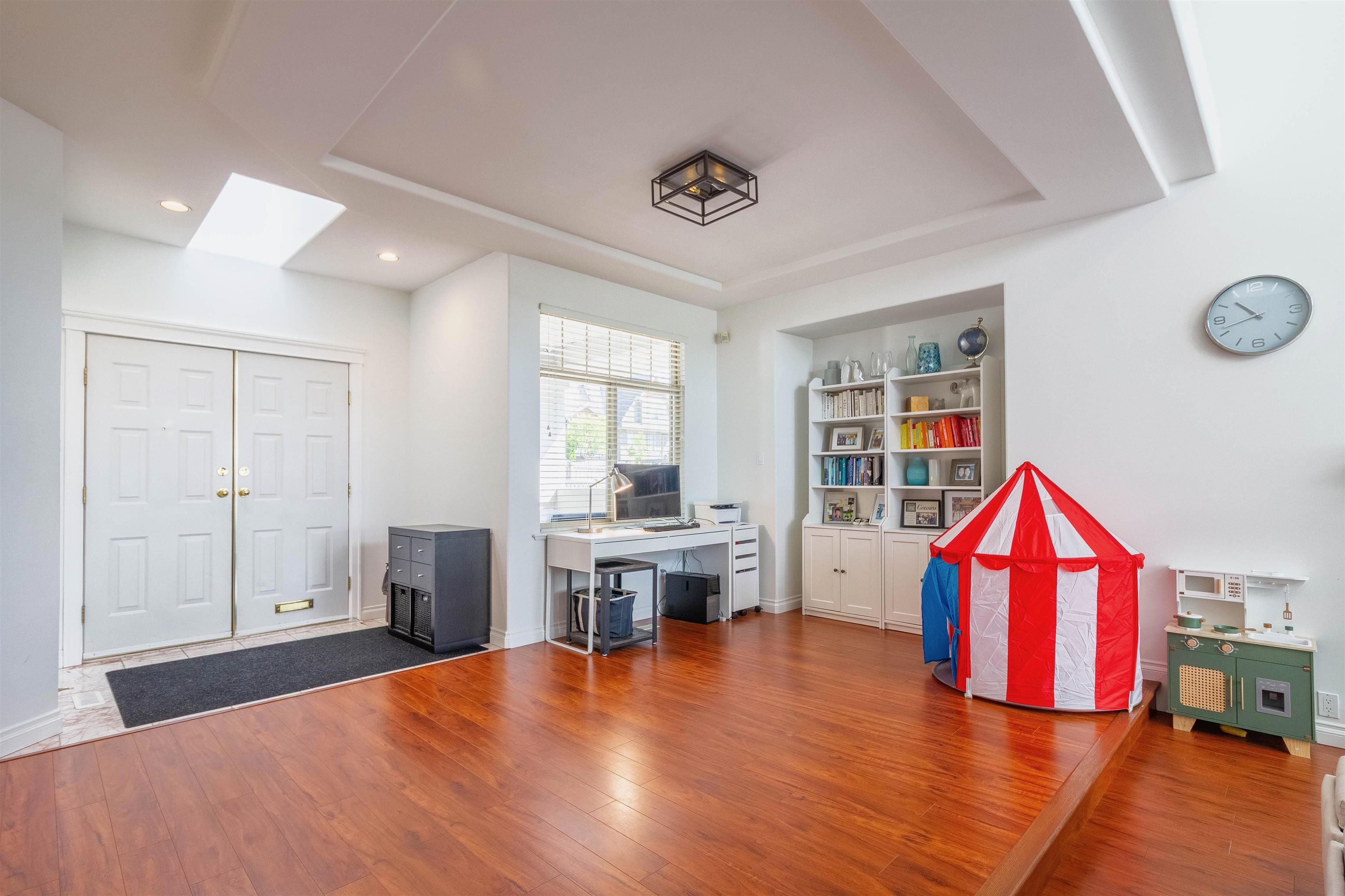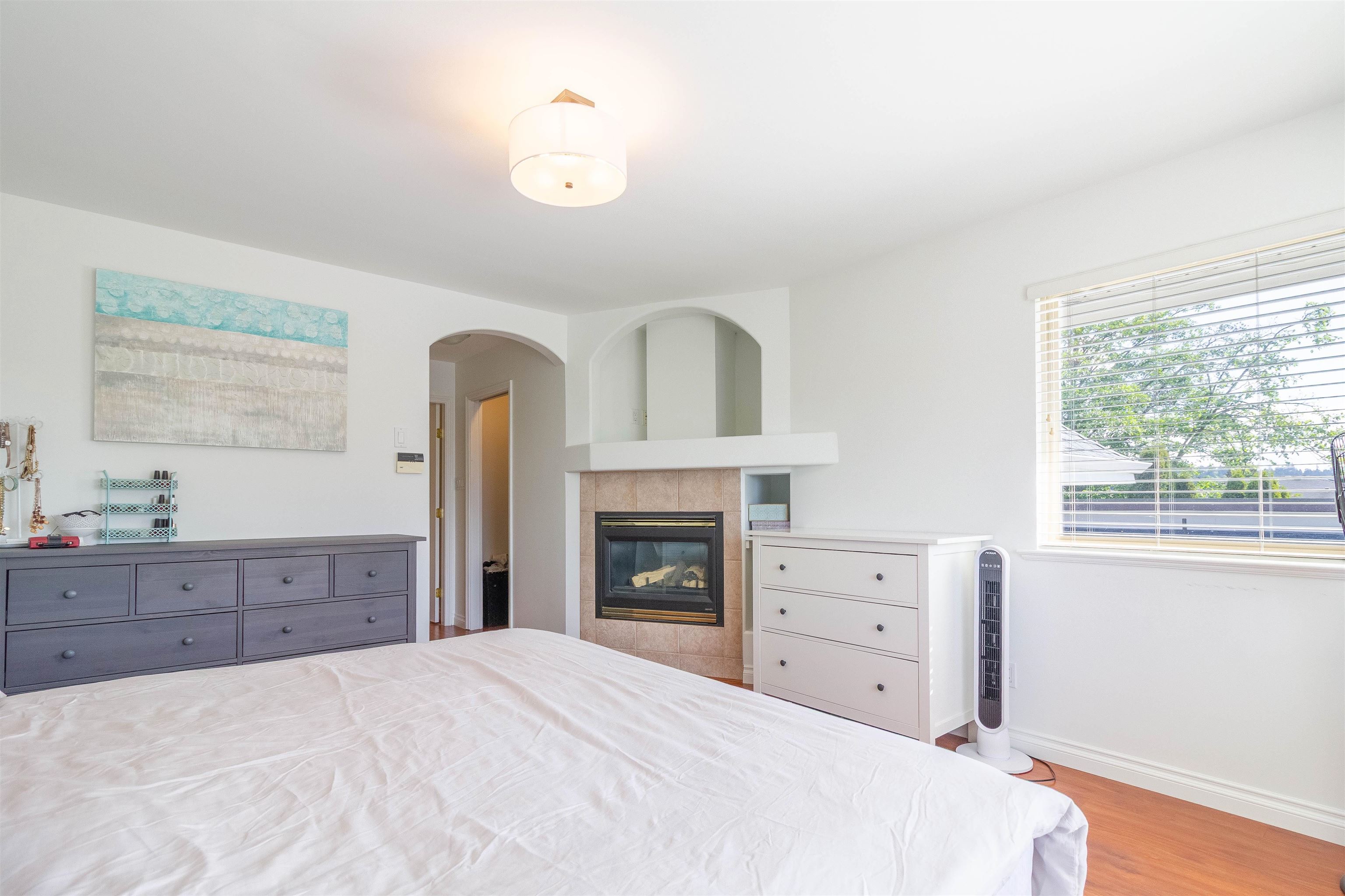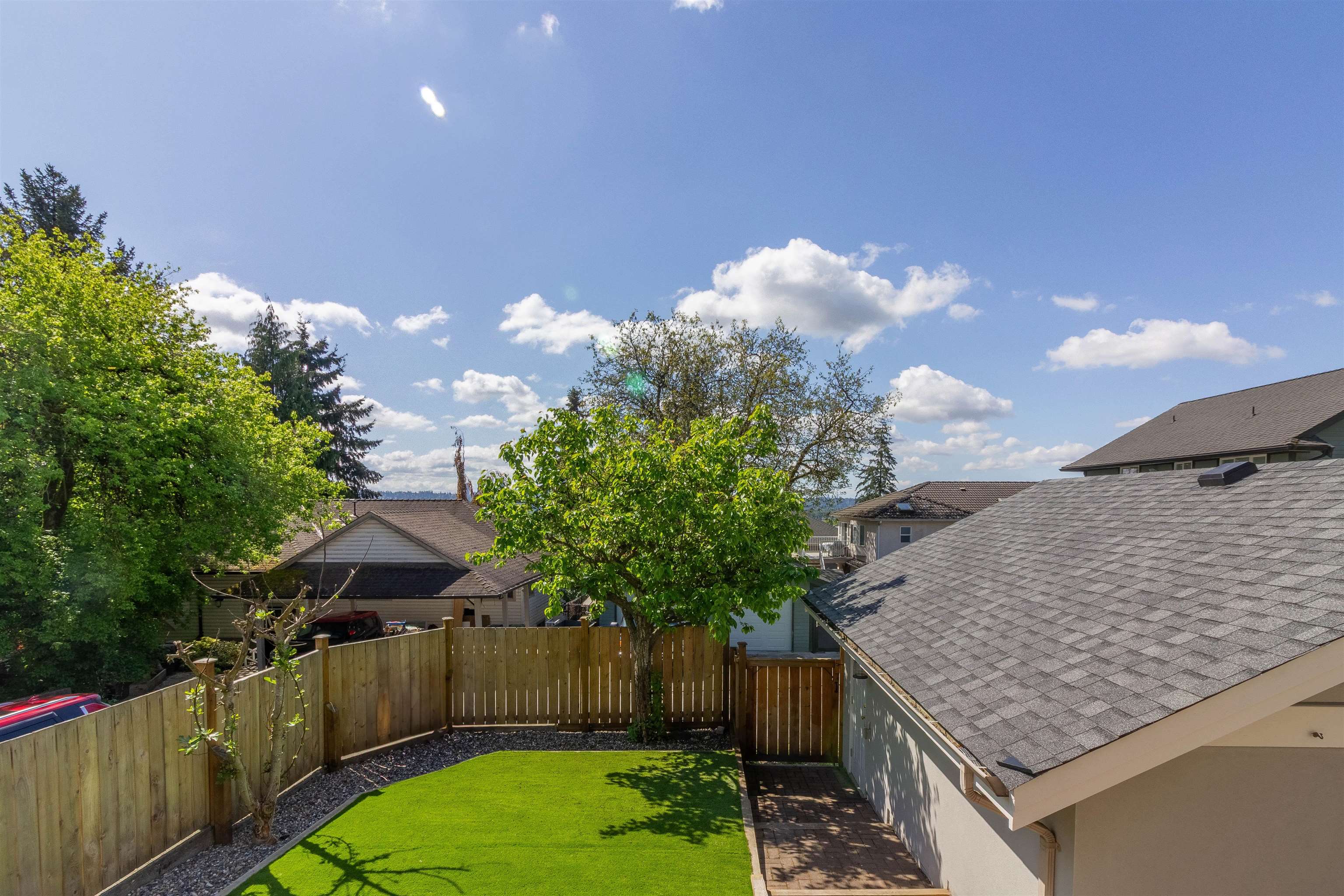 Welcome to this beautifully updated home with views of the Fraser River, nestled in the heart of Central Coquitlam. Step into a marble-tiled foyer under a bright skylight, leading to an impressive living room with 19' vaulted ceiling and a cozy gas fireplace. Flex space is ideal for home office or secondary lounge. Updated gourmet kitchen opens into the dining room. Enjoy outdoor living with both front and back covered decks, perfect for year-round enjoyment. Primary suite includes its own fireplace and a spa-inspired ensuite. Wake up each morning to beautiful southern views. Roof has been updated recently. Private fenced backyard is updated with new artificial turf and a covered patio with ample space for gatherings. Easy access to Lougheed Mall and North Road amenities.