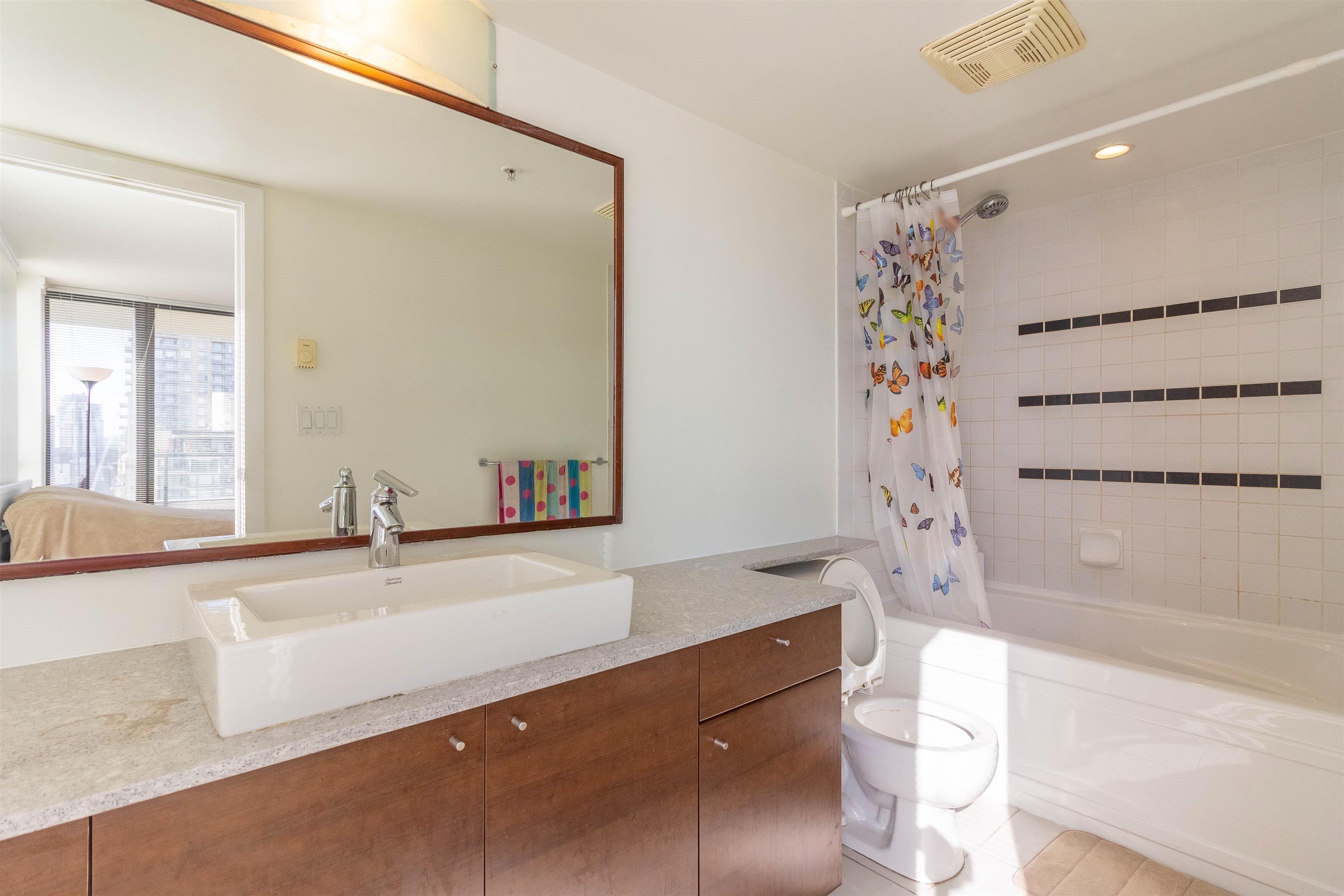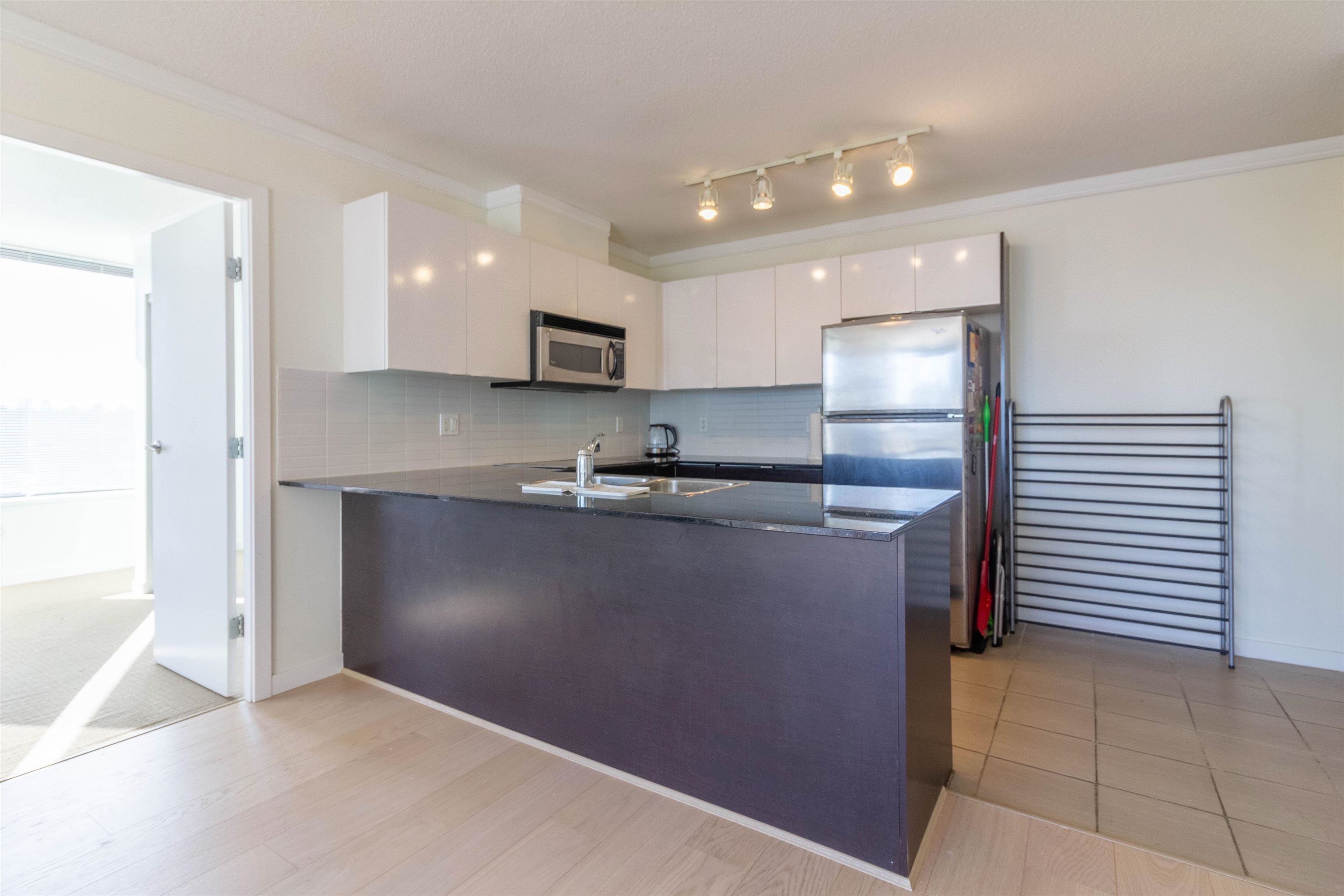Welcome to this refreshed higher-level 2-bed, 2-bath condo in Tandem development. Freshly painted and move-in ready, this bright Southeast-facing home offers partial mountain views and a functional open-concept layout. Enjoy resort-style living with access to the rooftop garden amenities building, featuring a party room, gym, hot tub, steam room, and sauna—a perfect retreat from the city's hustle and bustle. Unbeatable central location! Just a short walk to Gilmore SkyTrain, minutes from Brentwood Mall, and surrounded by fantastic dining, shopping, and grocery options—including the upcoming T&T Supermarket, Starbucks at your doorstep, and Oxygen Yoga nearby. School catchment Kitchener Elementary, Alpha Secondary or a 5min drive to BCIT or 15mins drive to SFU.