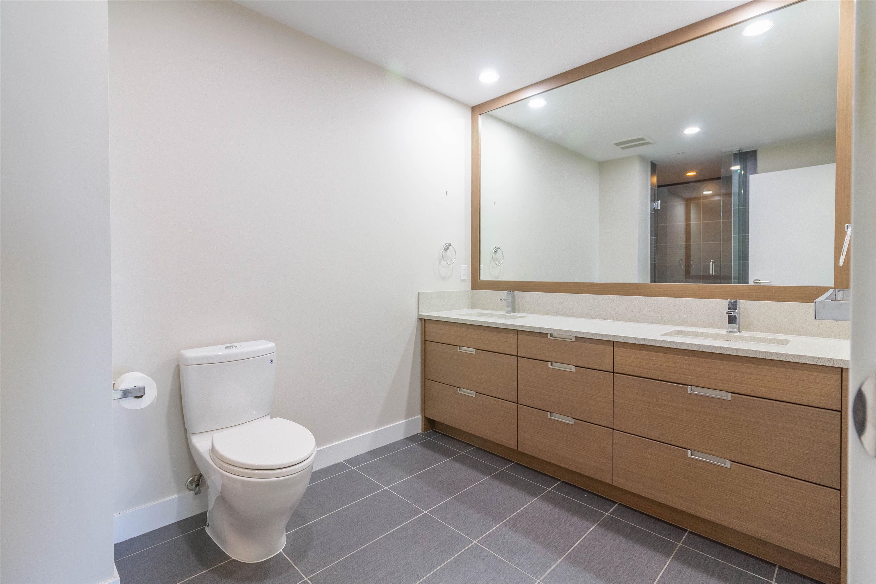 Welcome to VANTAGE by BOSA, a gem in the Heart of Brentwood! Perched high above the city, this spacious 2-bed+ open den, 2-bath home offers impressive 1248sf with 9' ceilings that flood the home with natural light. One of two unique layouts on the higher floors, this is truly a rare offering. Enjoy two balconies capturing panoramic southern city views and northeast mountain vistas. Open-concept living and dining areas flow into the kitchen with granite countertops and ample cabinetry. Primary suite is a true retreat, complete with an ensuite bathroom and spacious walk-in closet. Both bedrooms have access to the second private balcony. Amenities include concierge, gym, hot tub, sauna, and resident's lounge. Steps to Amazing Brentwood, Skytrain, shops and restaurants.