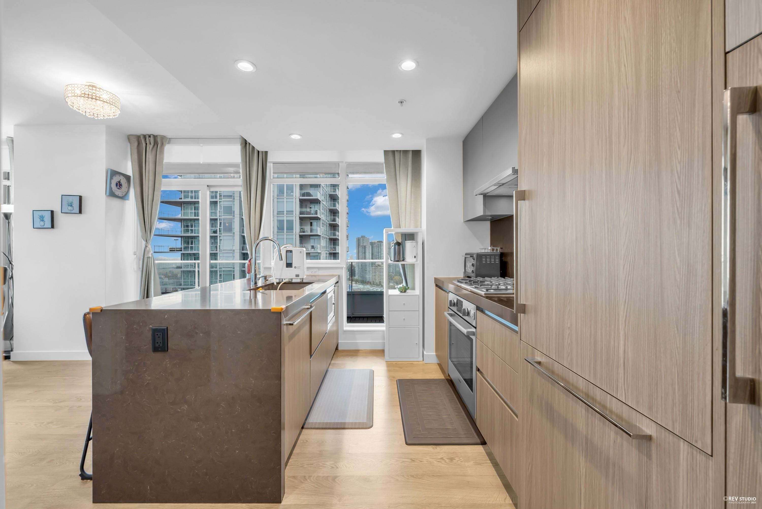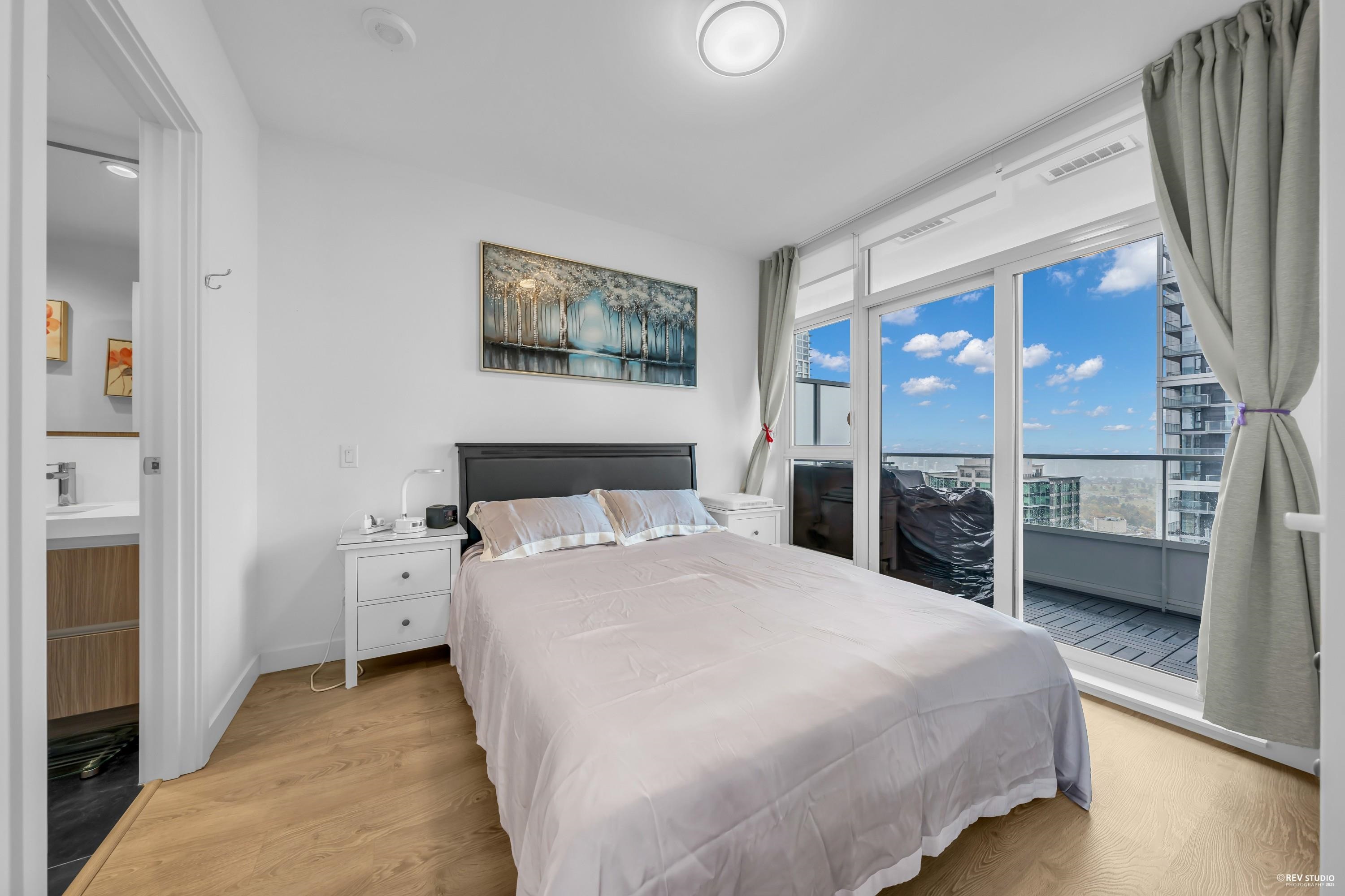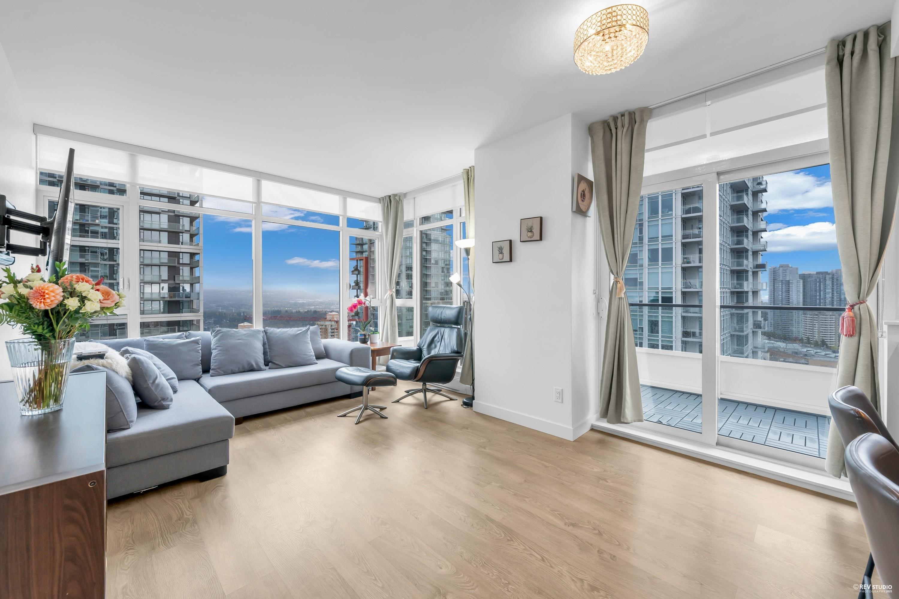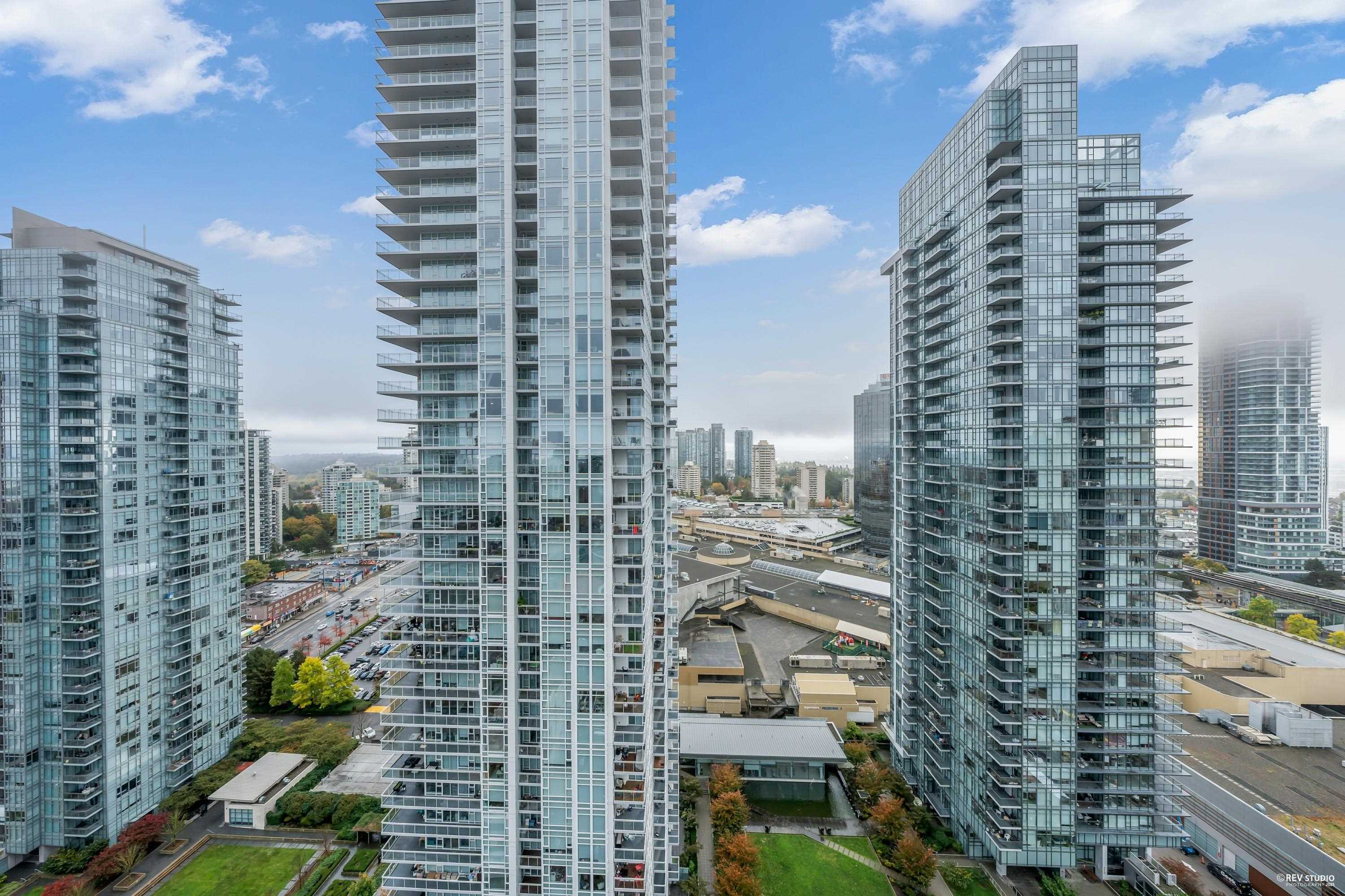 Located in the vibrant heart of Metrotown, Station Square Tower 4 by Anthem & Beedie Living defines luxury and convenience. This 2-bedroom, 2-bathroom corner residence boasts desirable Southeast and Northeast exposure, flooding the home with natural light and showcasing breathtaking views of the North Shore Mountains, Deer Lake, and city skyline. Thoughtfully designed with floor-to-ceiling windows, two spacious balconies (240 sqft), and seamless wood laminate flooring, it features a modern BOSCH kitchen with gas cooktop, built-in oven, and integrated refrigerator & dishwasher. Residents enjoy 32,000 sqft of premium amenities-a fitness centre, yoga studio, guest suite, rooftop garden with BBQ lounge, and 24-hour concierge. Steps to Metropolis, SkyTrain, and Central Park. Must See!!!