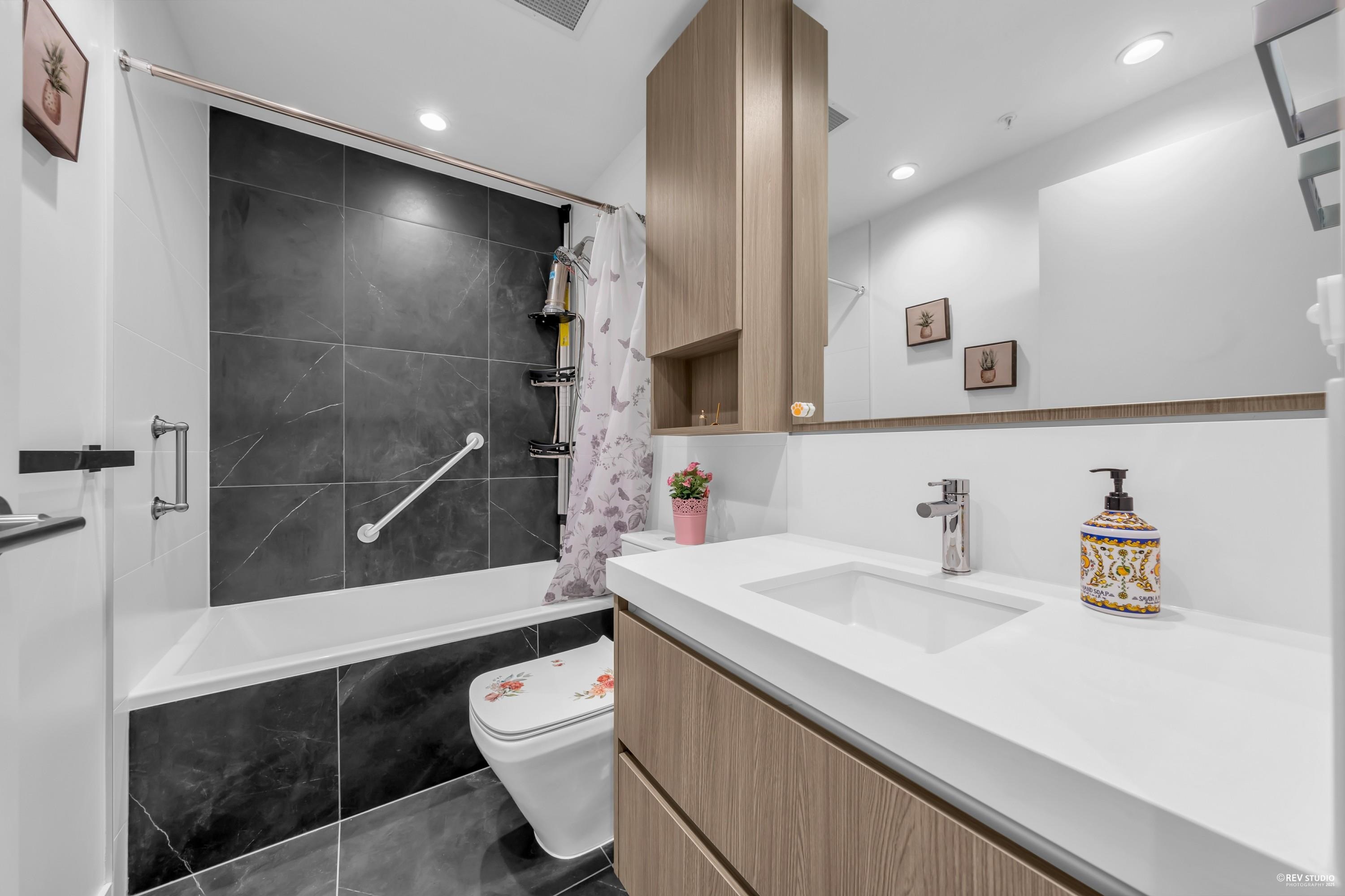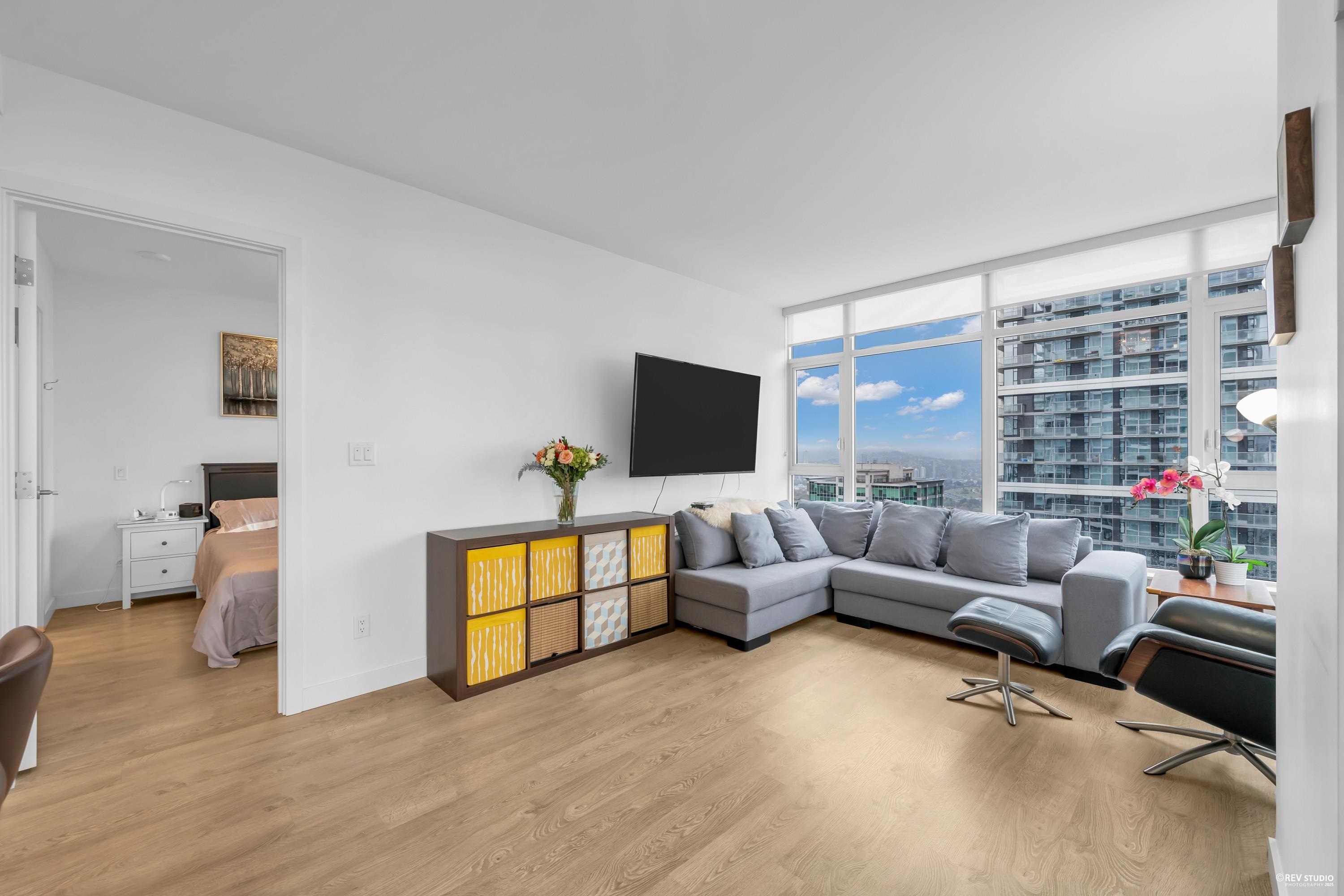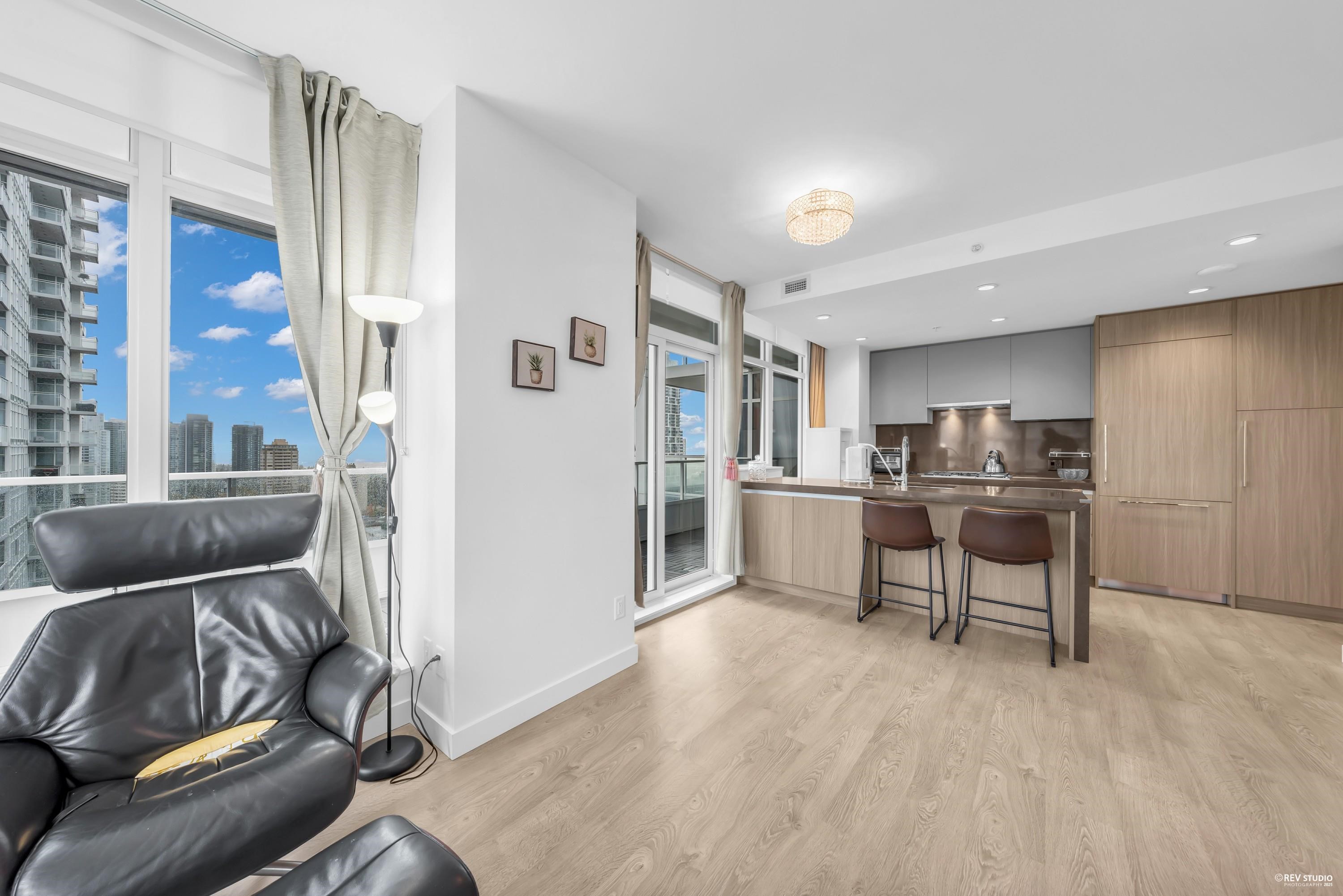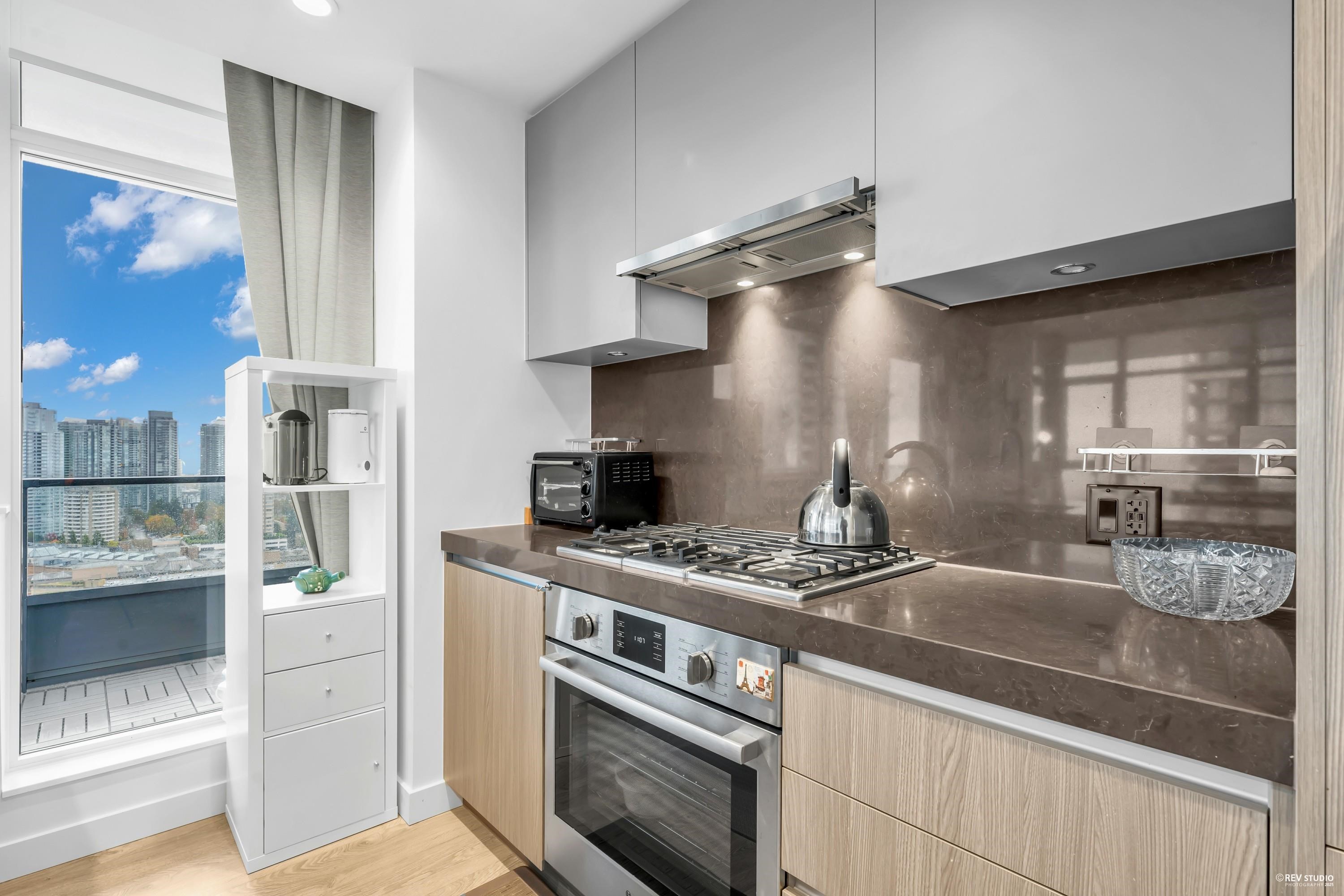 Located in the vibrant heart of Metrotown, Station Square Tower 4 by Anthem & Beedie Living defines luxury and convenience. This 2-bedroom, 2-bathroom corner residence boasts desirable Southeast and Northeast exposure, flooding the home with natural light and showcasing breathtaking views of the North Shore Mountains, Deer Lake, and city skyline. Thoughtfully designed with floor-to-ceiling windows, two spacious balconies (240 sqft), and seamless wood laminate flooring, it features a modern BOSCH kitchen with gas cooktop, built-in oven, and integrated refrigerator & dishwasher. Residents enjoy 32,000 sqft of premium amenities-a fitness centre, yoga studio, guest suite, rooftop garden with BBQ lounge, and 24-hour concierge. Steps to Metropolis, SkyTrain, and Central Park. Must See!!!