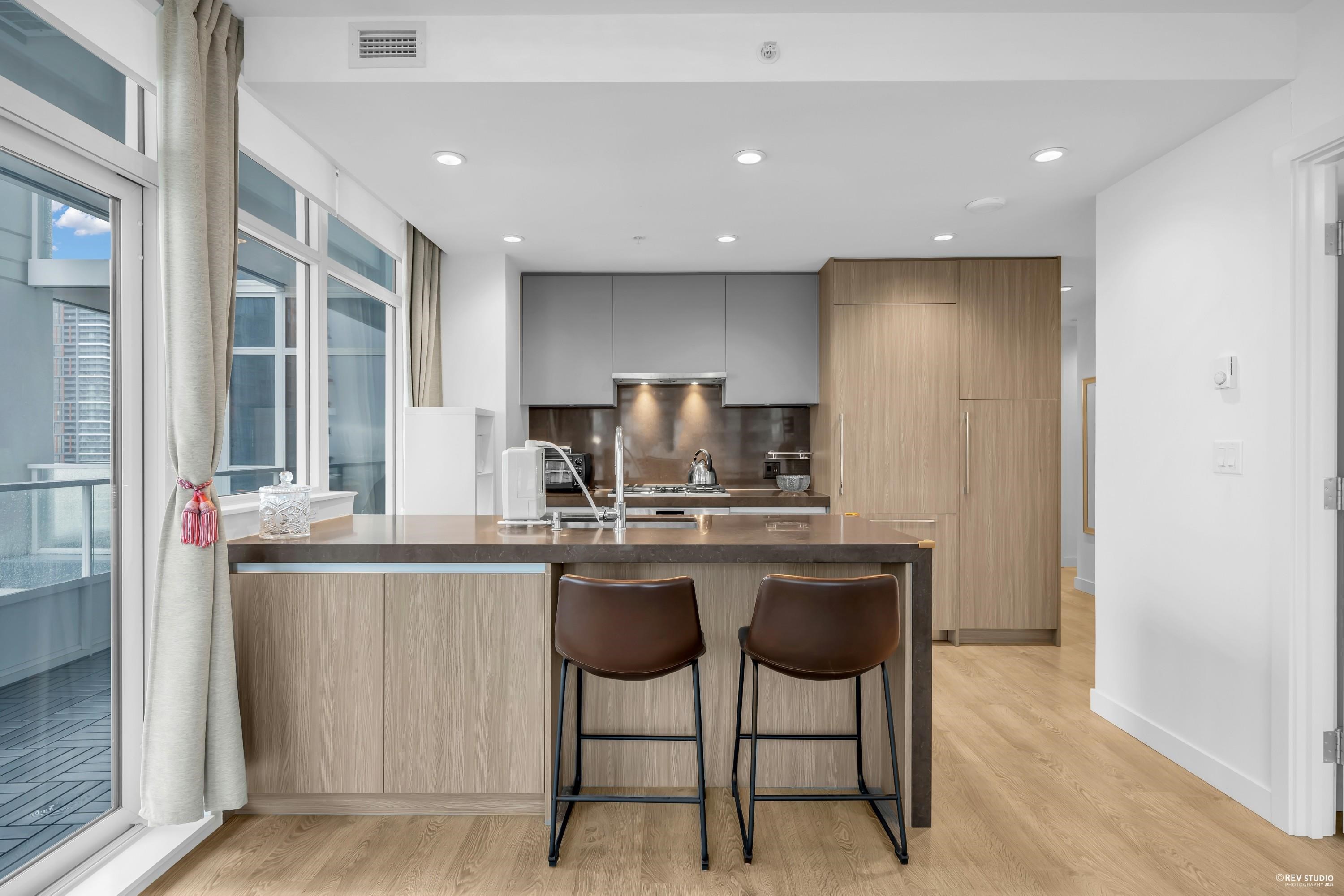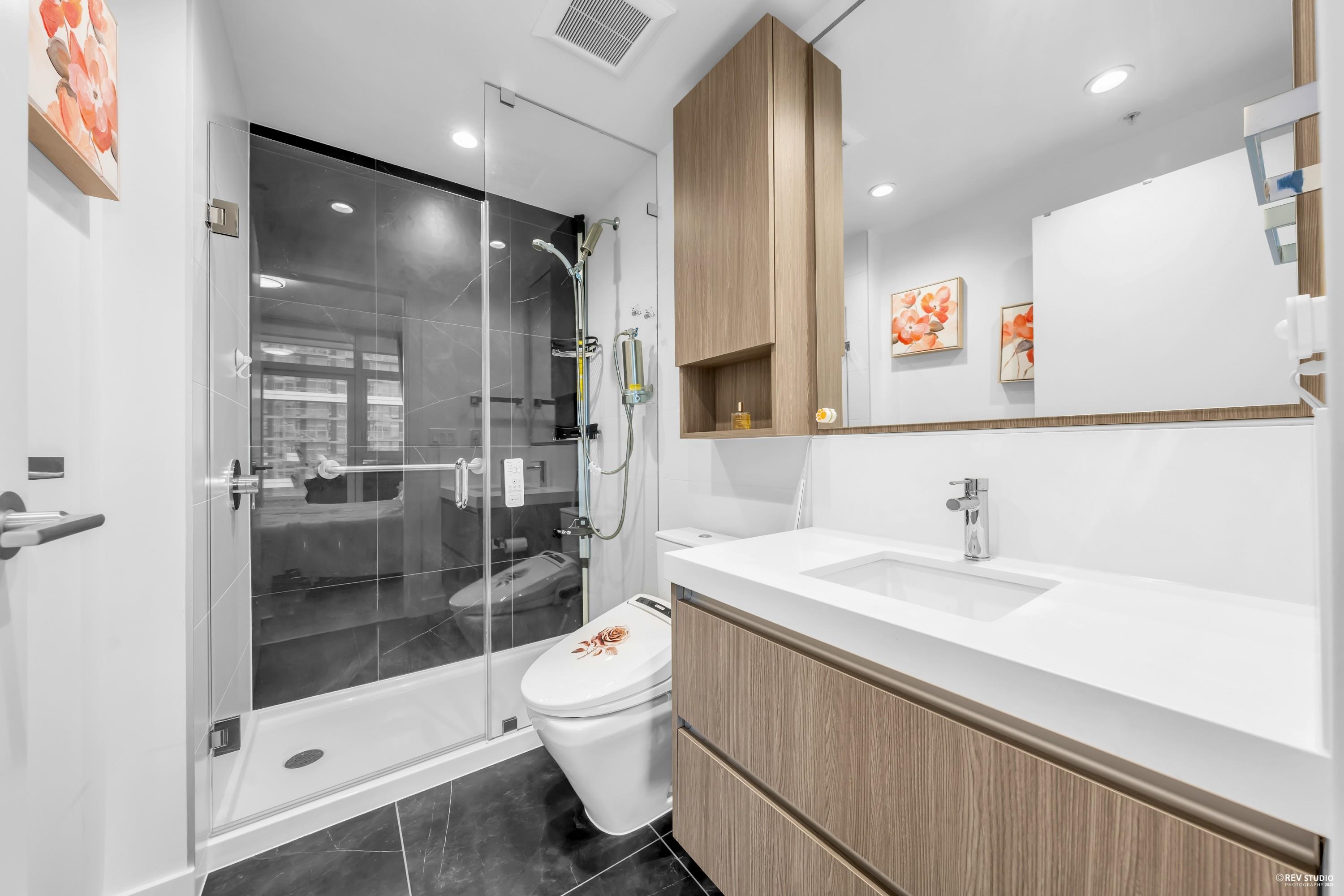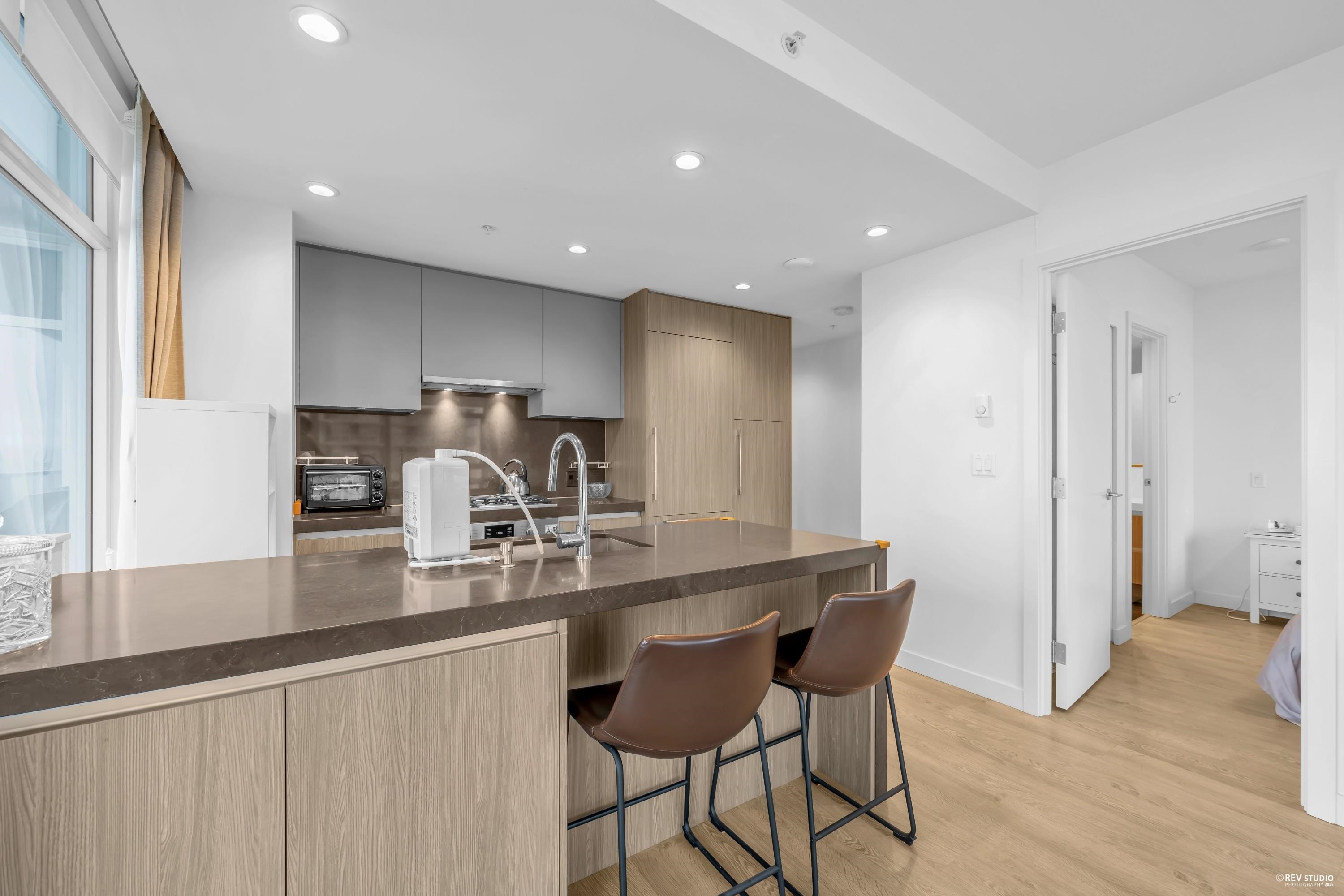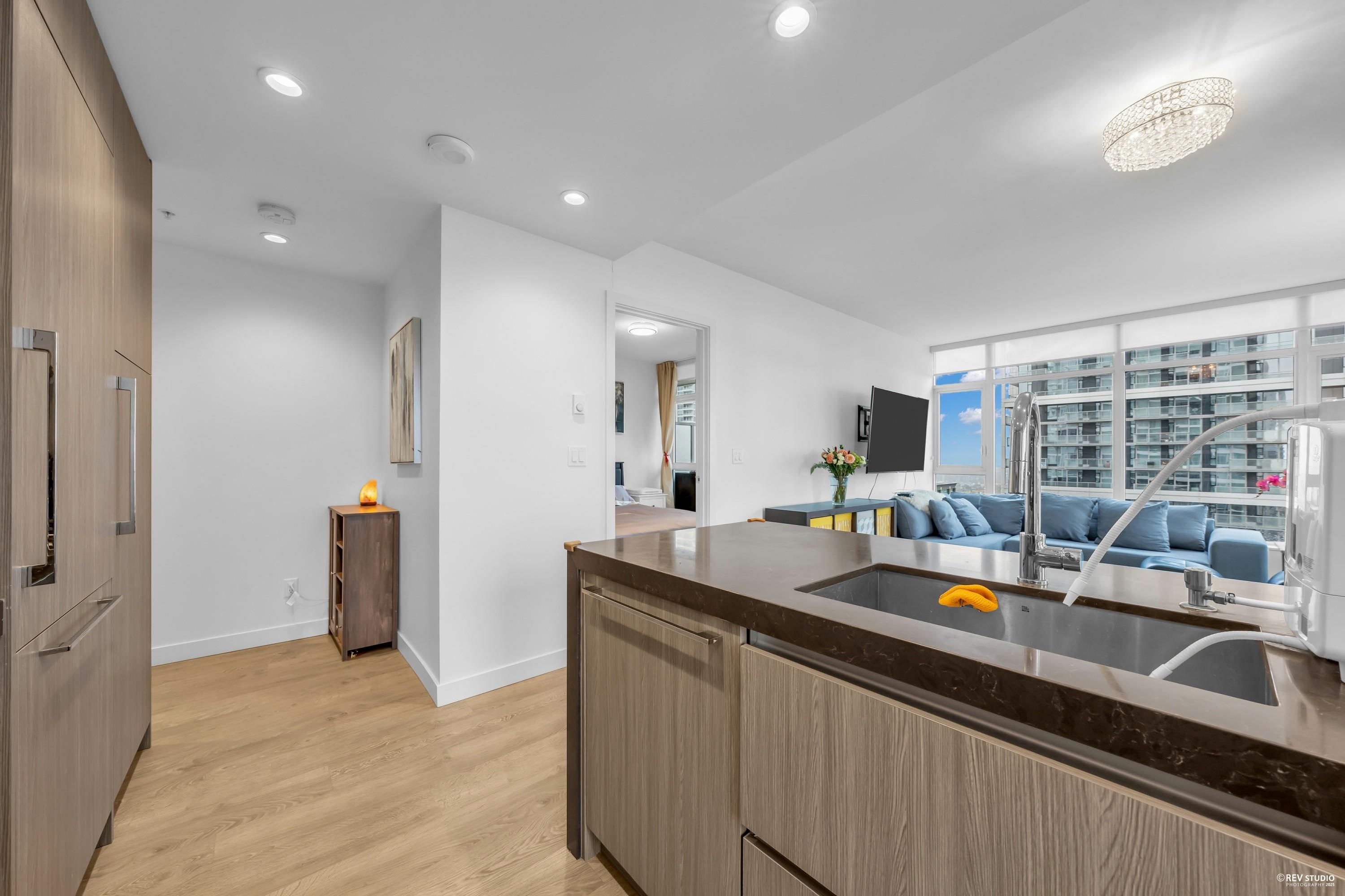 Located in the vibrant heart of Metrotown, Station Square Tower 4 by Anthem & Beedie Living defines luxury and convenience. This 2-bedroom, 2-bathroom corner residence boasts desirable Southeast and Northeast exposure, flooding the home with natural light and showcasing breathtaking views of the North Shore Mountains, Deer Lake, and city skyline. Thoughtfully designed with floor-to-ceiling windows, two spacious balconies (240 sqft), and seamless wood laminate flooring, it features a modern BOSCH kitchen with gas cooktop, built-in oven, and integrated refrigerator & dishwasher. Residents enjoy 32,000 sqft of premium amenities-a fitness centre, yoga studio, guest suite, rooftop garden with BBQ lounge, and 24-hour concierge. Steps to Metropolis, SkyTrain, and Central Park. Must See!!!