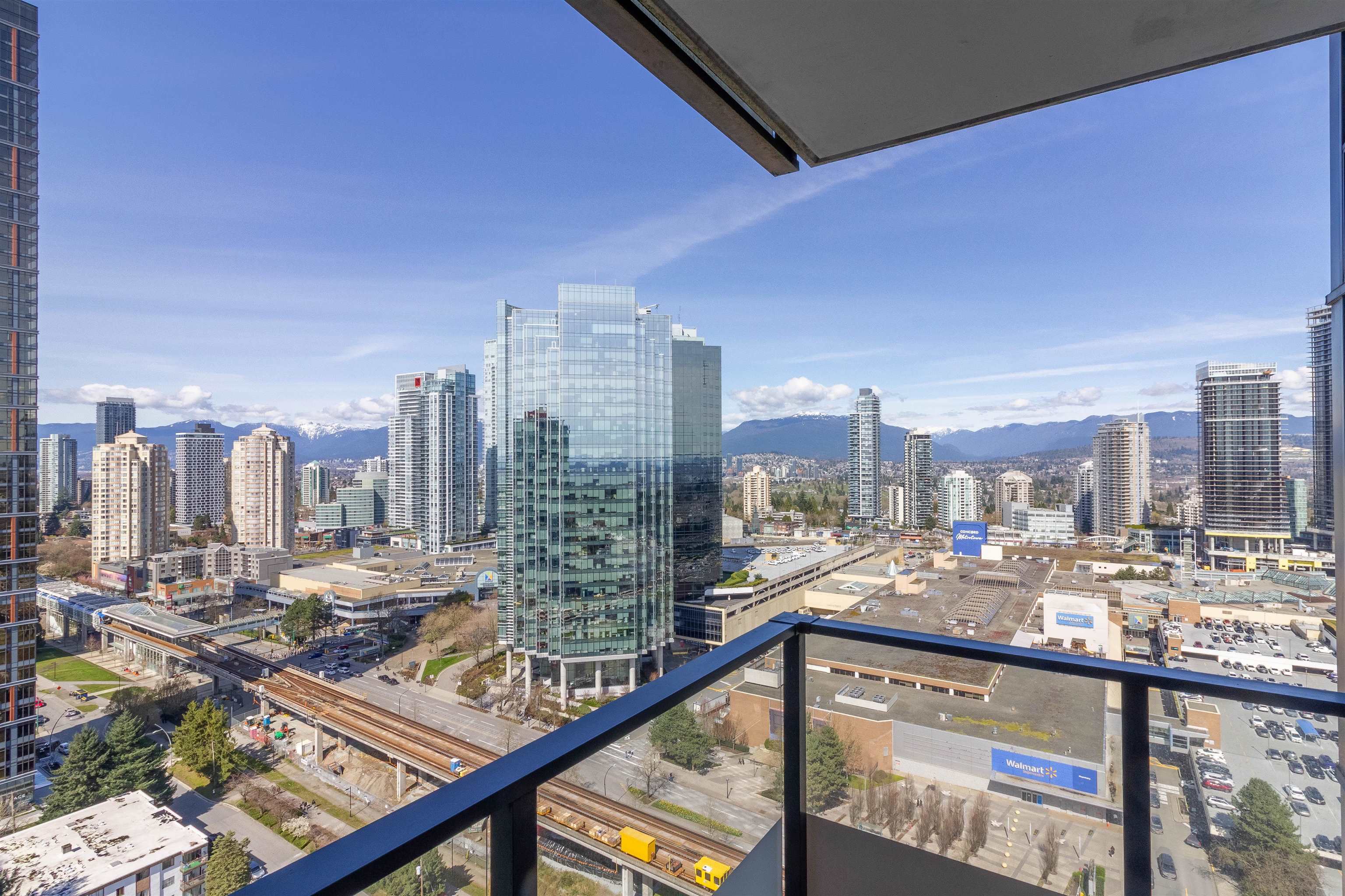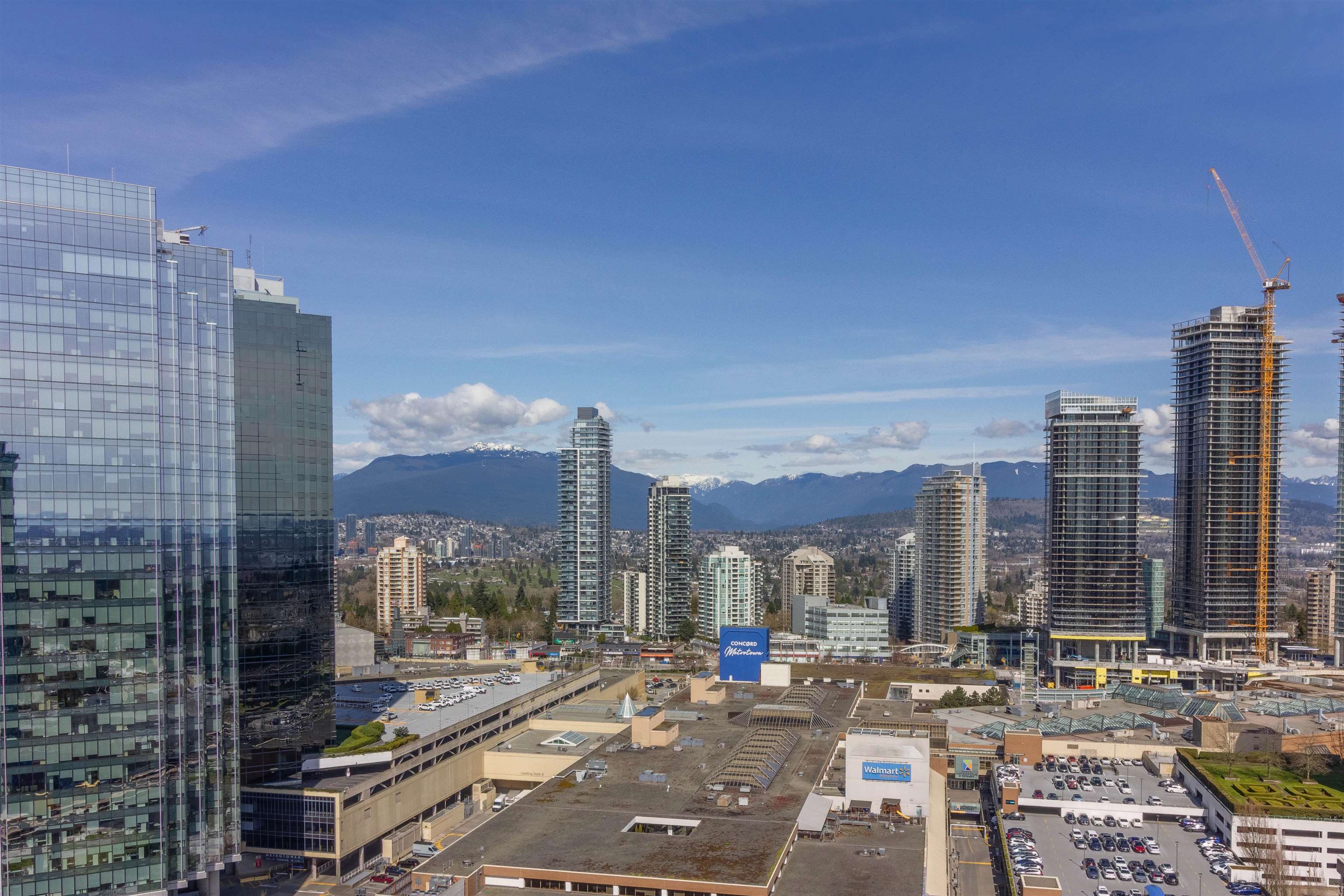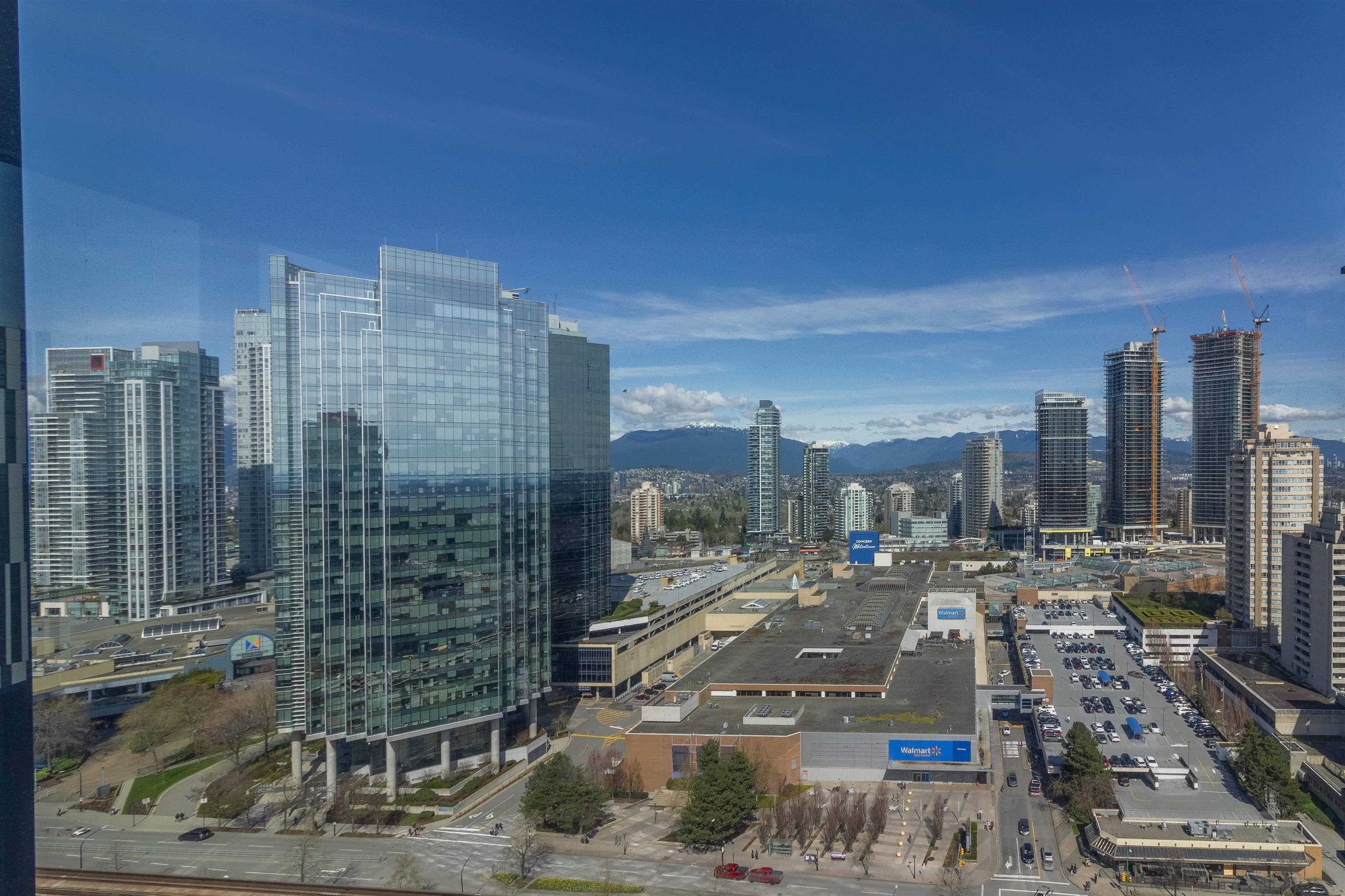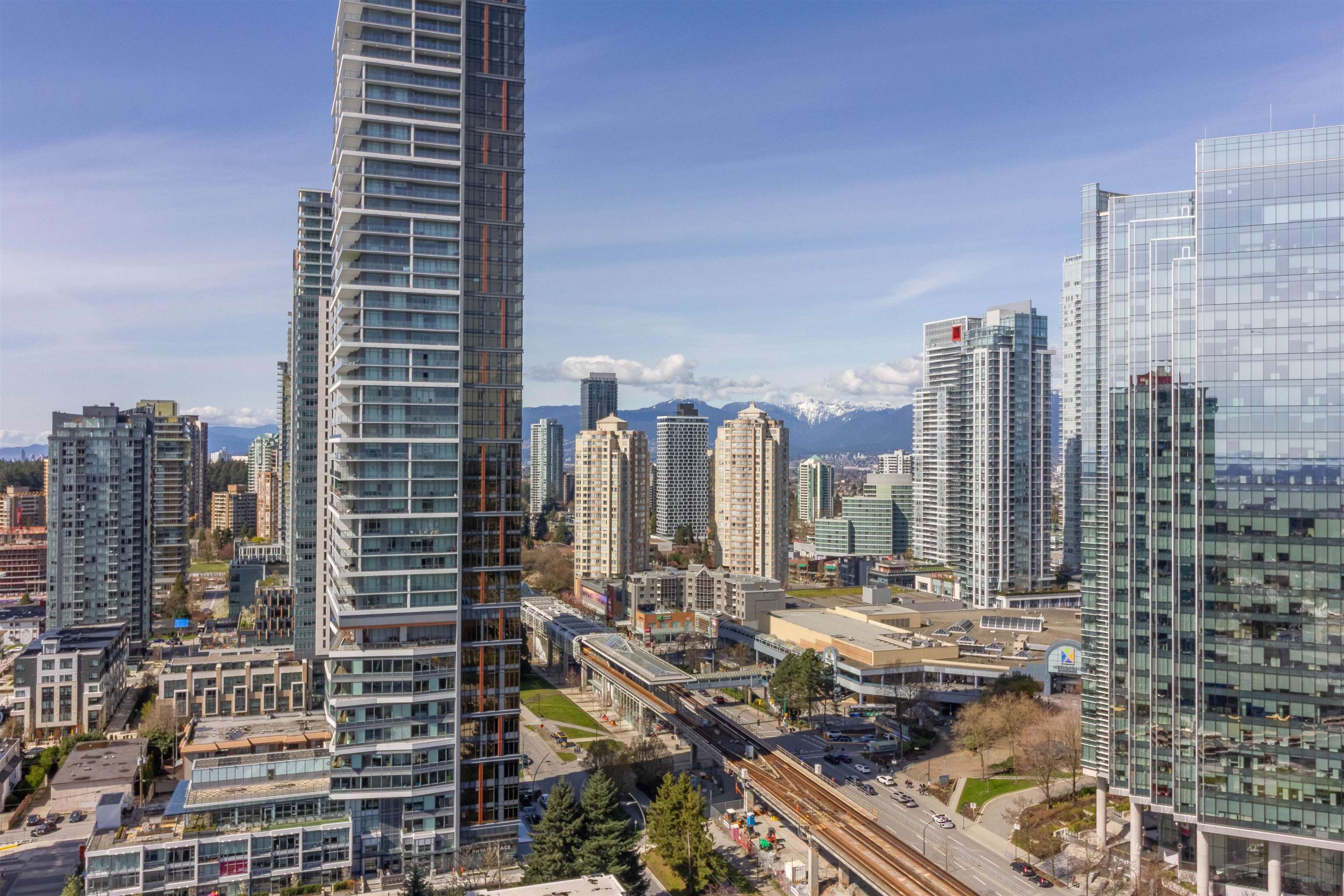 Welcome to MODA in the heart of Metrotown - a bright higher floor corner unit offering 2 beds and 2 baths with stunning northwest-facing mountain views, partial southern views and abundant natural light throughout. This well-designed home features a functional layout that shows beautifully, making it a standout choice in the building. Enjoy premium amenities including a 24/7 concierge service, lounge/party room, fully equipped gym, landscaped garden, and pet washing station. Comes with 1 parking and 1 locker. Walk across to Metropolis for groceries at T&T, Walmart, restaurants, cafes, shopping, entertainment and much more. Metrotown Skytrain is just a 5-min walk. Central Park is only 20 mins away. School catchment Maywood Elementary, Burnaby South Secondary and 10-min drive to BCIT.