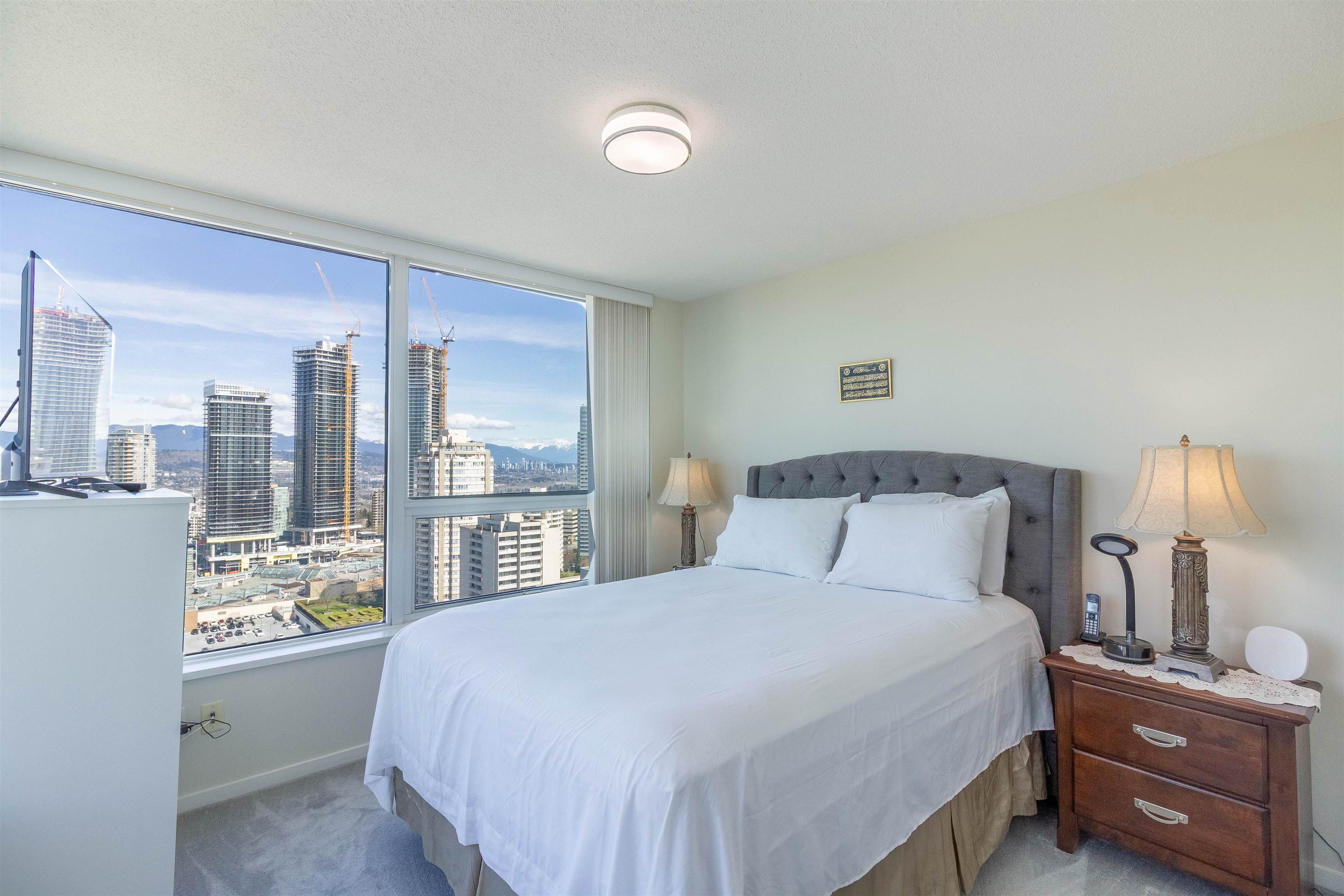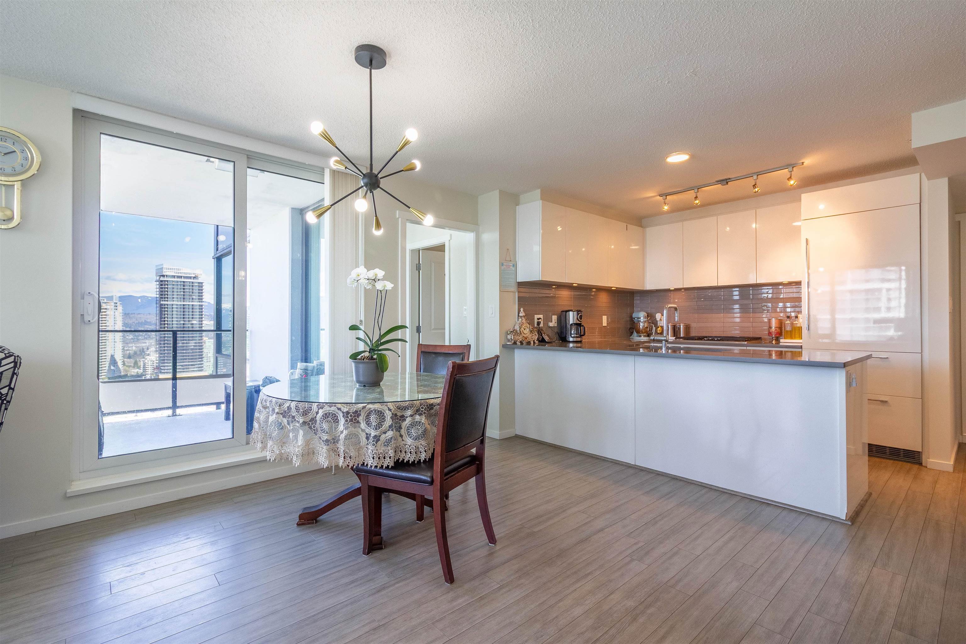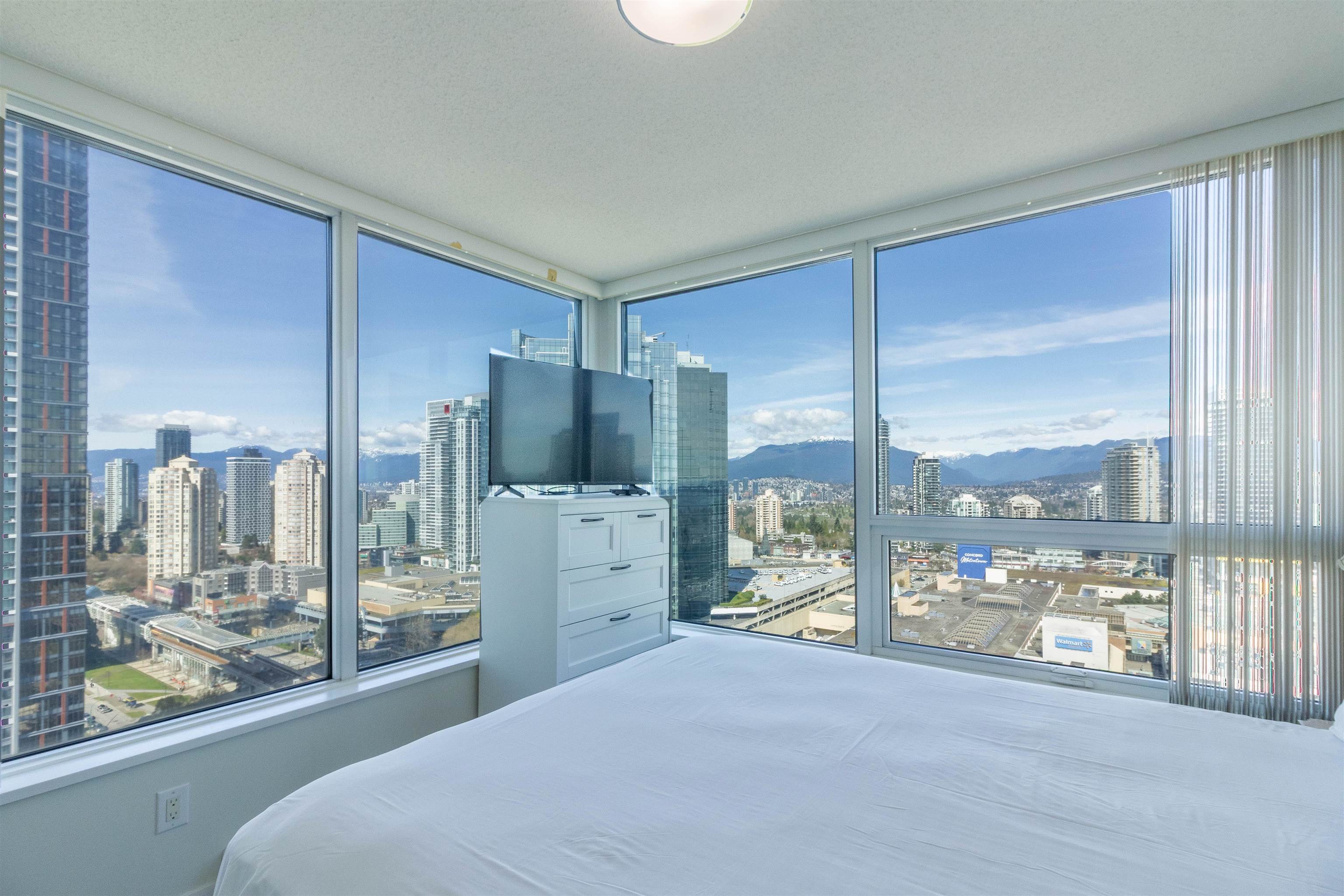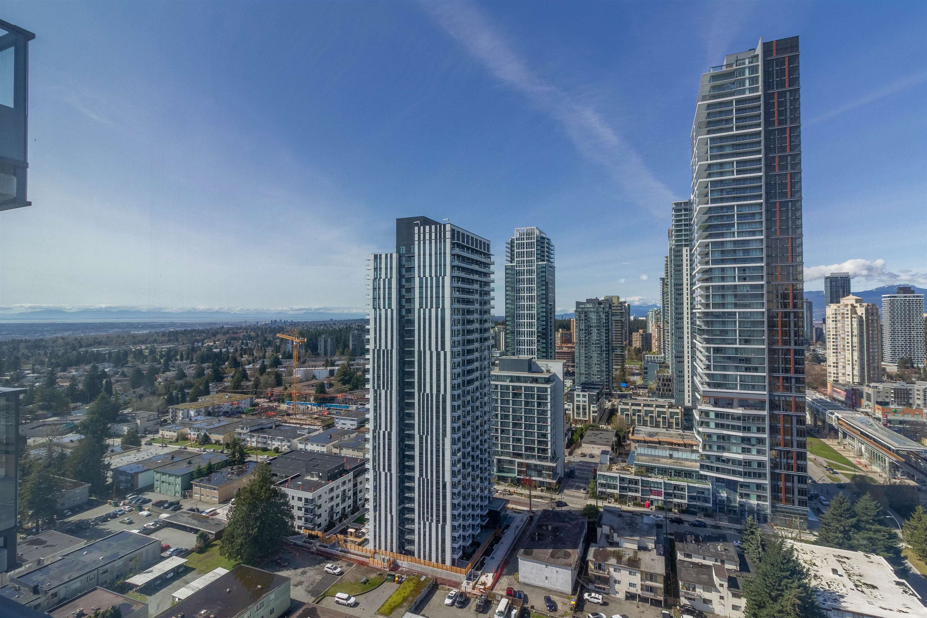 Welcome to MODA in the heart of Metrotown - a bright higher floor corner unit offering 2 beds and 2 baths with stunning northwest-facing mountain views, partial southern views and abundant natural light throughout. This well-designed home features a functional layout that shows beautifully, making it a standout choice in the building. Enjoy premium amenities including a 24/7 concierge service, lounge/party room, fully equipped gym, landscaped garden, and pet washing station. Comes with 1 parking and 1 locker. Walk across to Metropolis for groceries at T&T, Walmart, restaurants, cafes, shopping, entertainment and much more. Metrotown Skytrain is just a 5-min walk. Central Park is only 20 mins away. School catchment Maywood Elementary, Burnaby South Secondary and 10-min drive to BCIT.