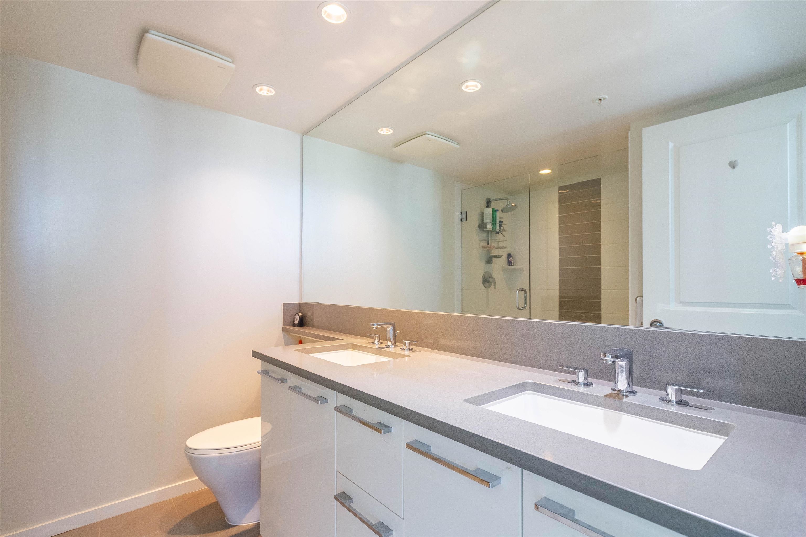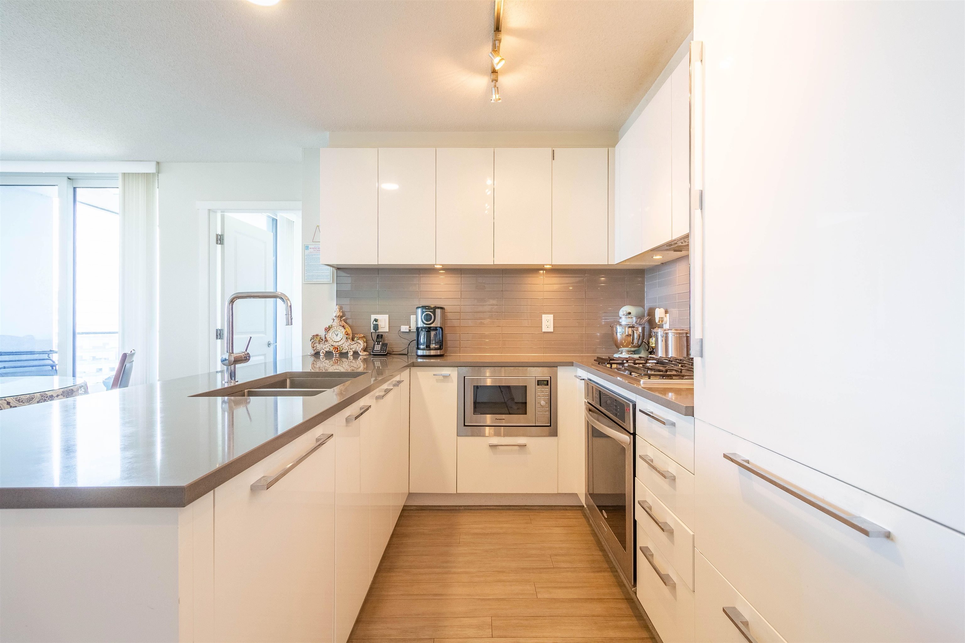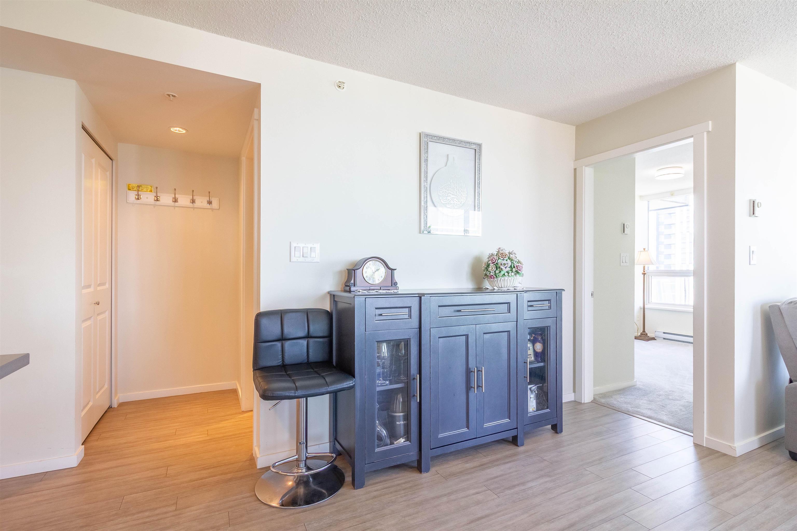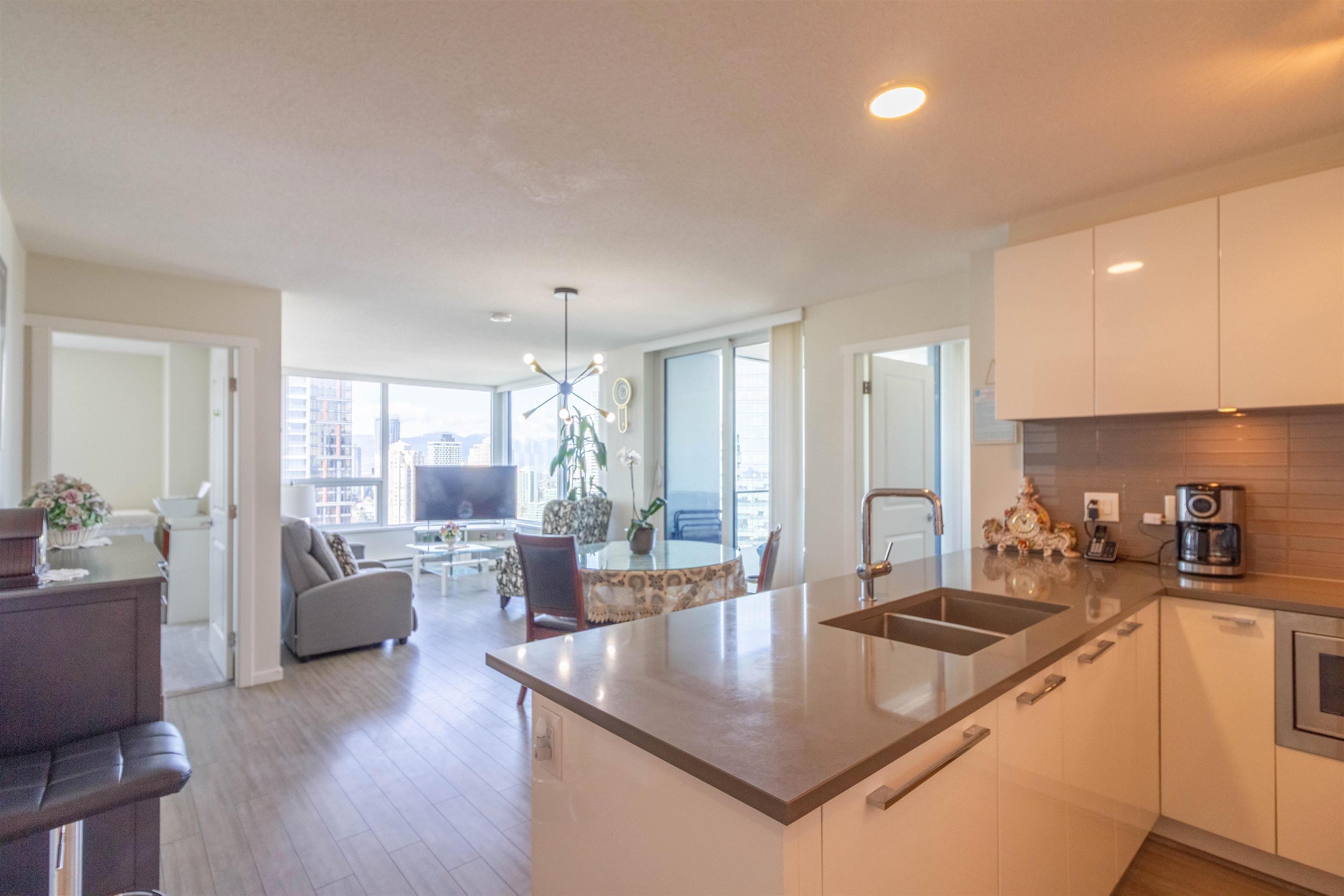 Welcome to MODA in the heart of Metrotown - a bright higher floor corner unit offering 2 beds and 2 baths with stunning northwest-facing mountain views, partial southern views and abundant natural light throughout. This well-designed home features a functional layout that shows beautifully, making it a standout choice in the building. Enjoy premium amenities including a 24/7 concierge service, lounge/party room, fully equipped gym, landscaped garden, and pet washing station. Comes with 1 parking and 1 locker. Walk across to Metropolis for groceries at T&T, Walmart, restaurants, cafes, shopping, entertainment and much more. Metrotown Skytrain is just a 5-min walk. Central Park is only 20 mins away. School catchment Maywood Elementary, Burnaby South Secondary and 10-min drive to BCIT.
