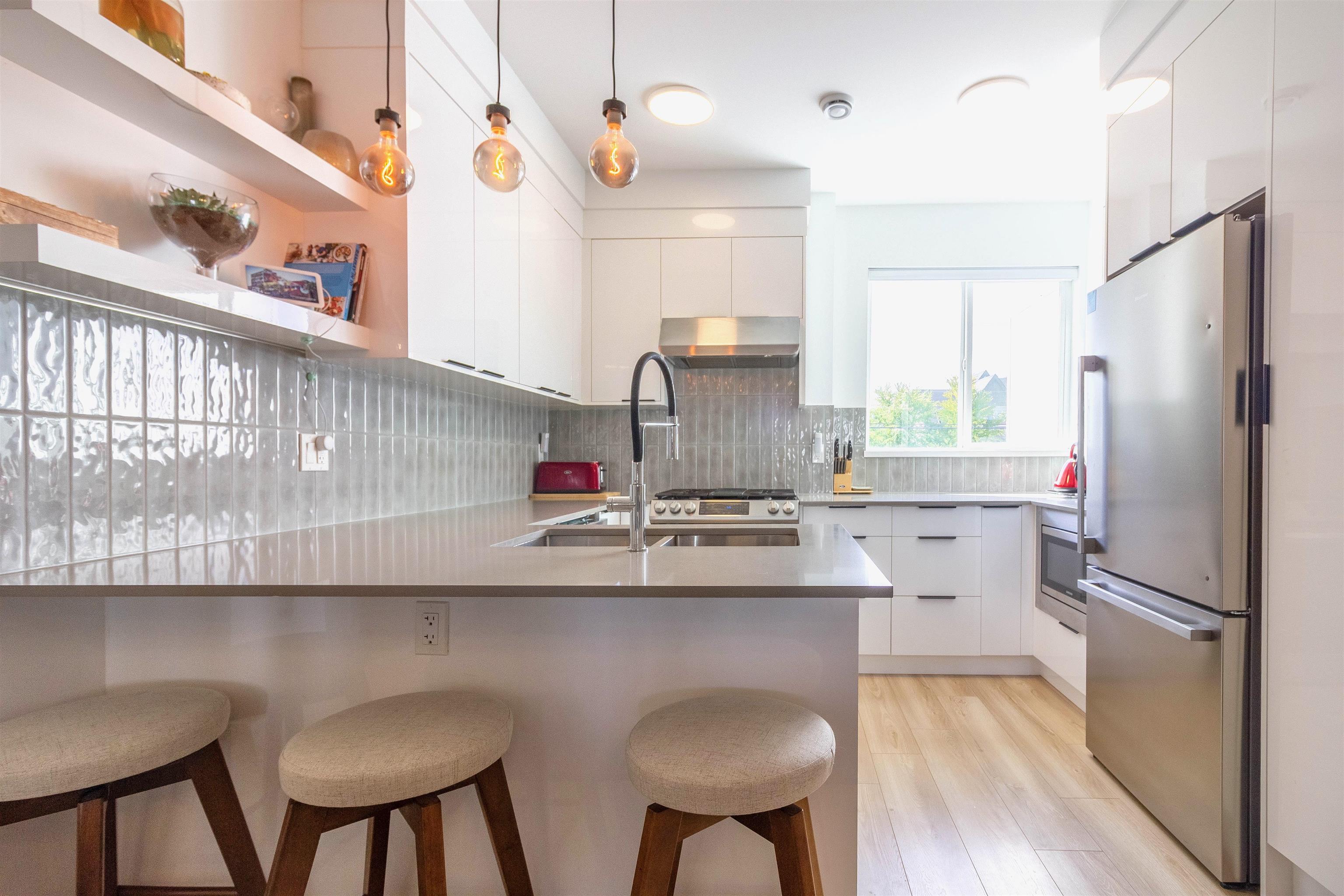 Welcome to ORENDA in vibrant Clayton Heights neighbourhood. This 4 bed 3 bath townhouse offers 9' ceilings and open-concept flow from living room to dining to kitchen, perfect for entertaining. Owner added thoughtful developer upgrades including a gas stove and wood laminate flooring throughout living spaces and bedrooms. Upstairs features 3 spacious bedrooms with primary bedroom boasting a spa-inspired ensuite and large walk-in closet. Step out to the covered patio for year-round enjoyment. Nearby are several parks, dog park and Clayton Community Centre with recreation, arts, library, gym, pool and more. Short drive to Fraser Highway. School catchments: Clayton Elementary, RE Mountain Secondary (IB program), and Ecole Salish Secondary.