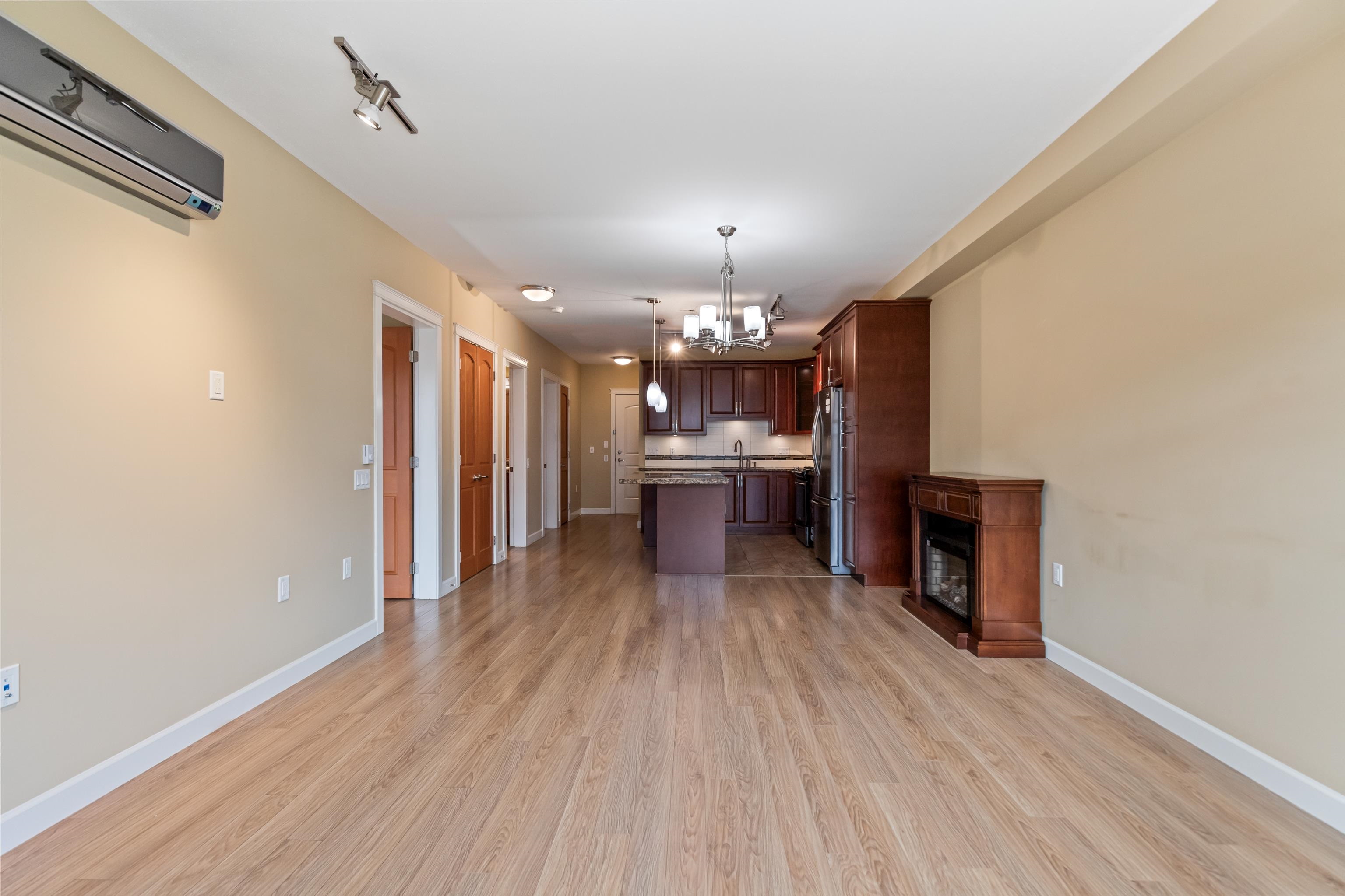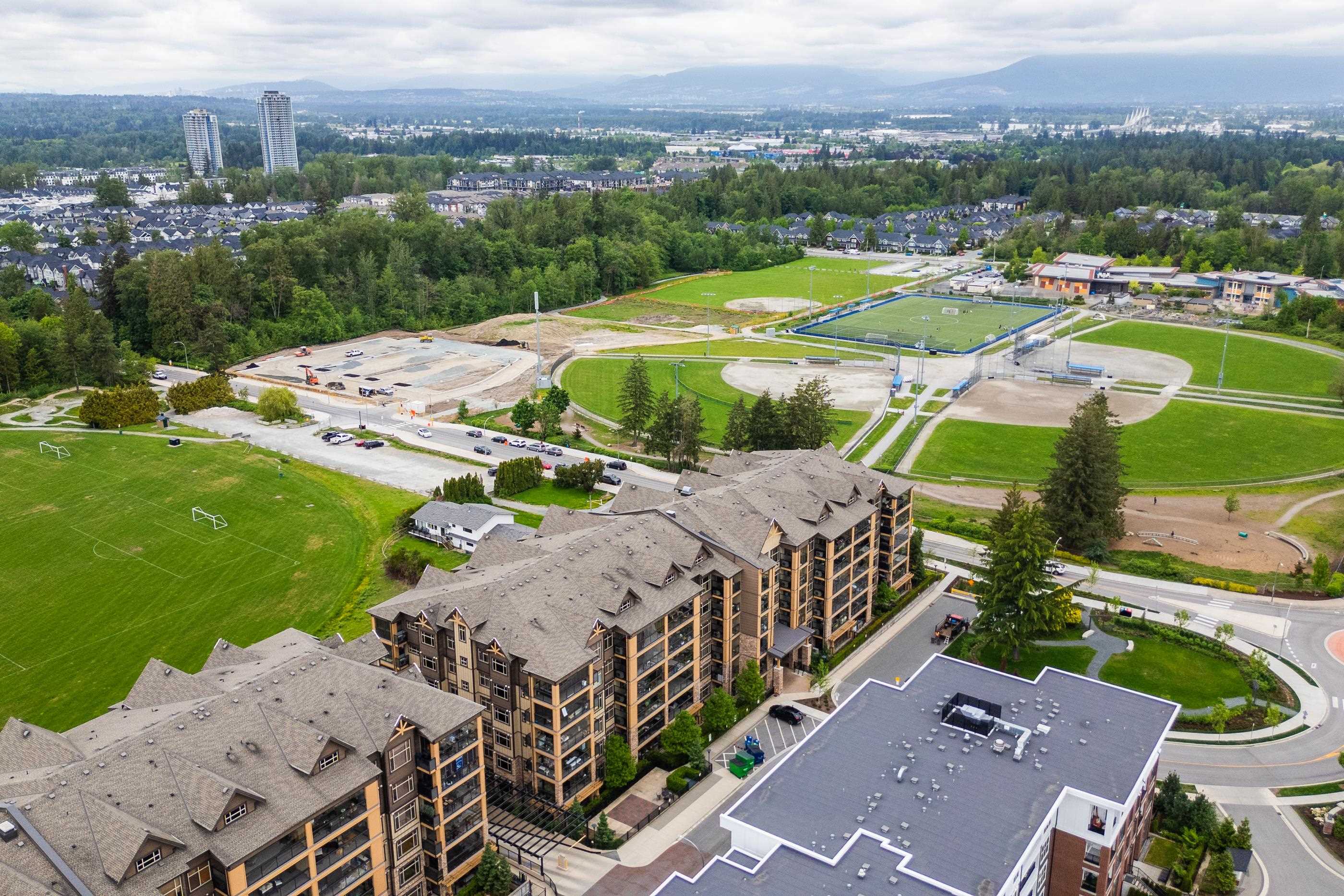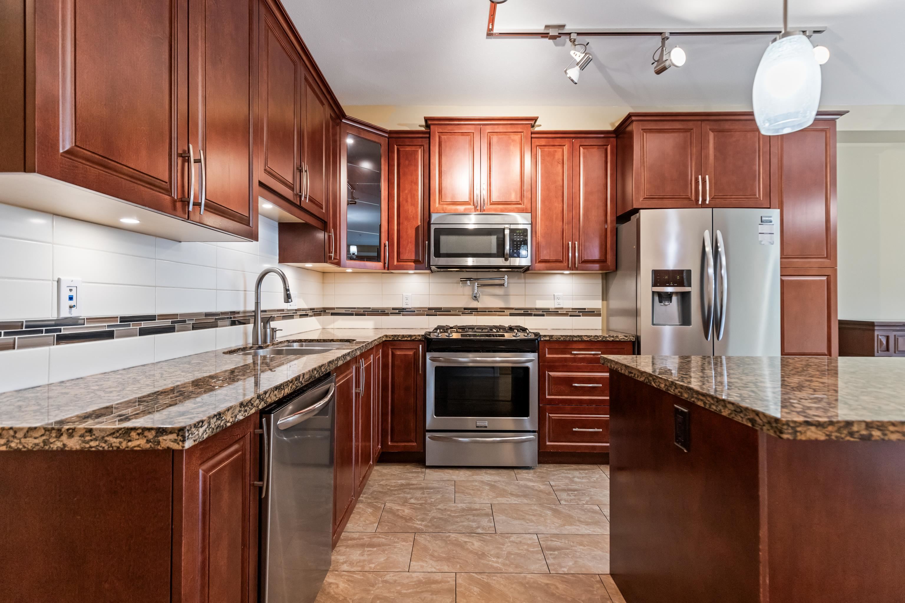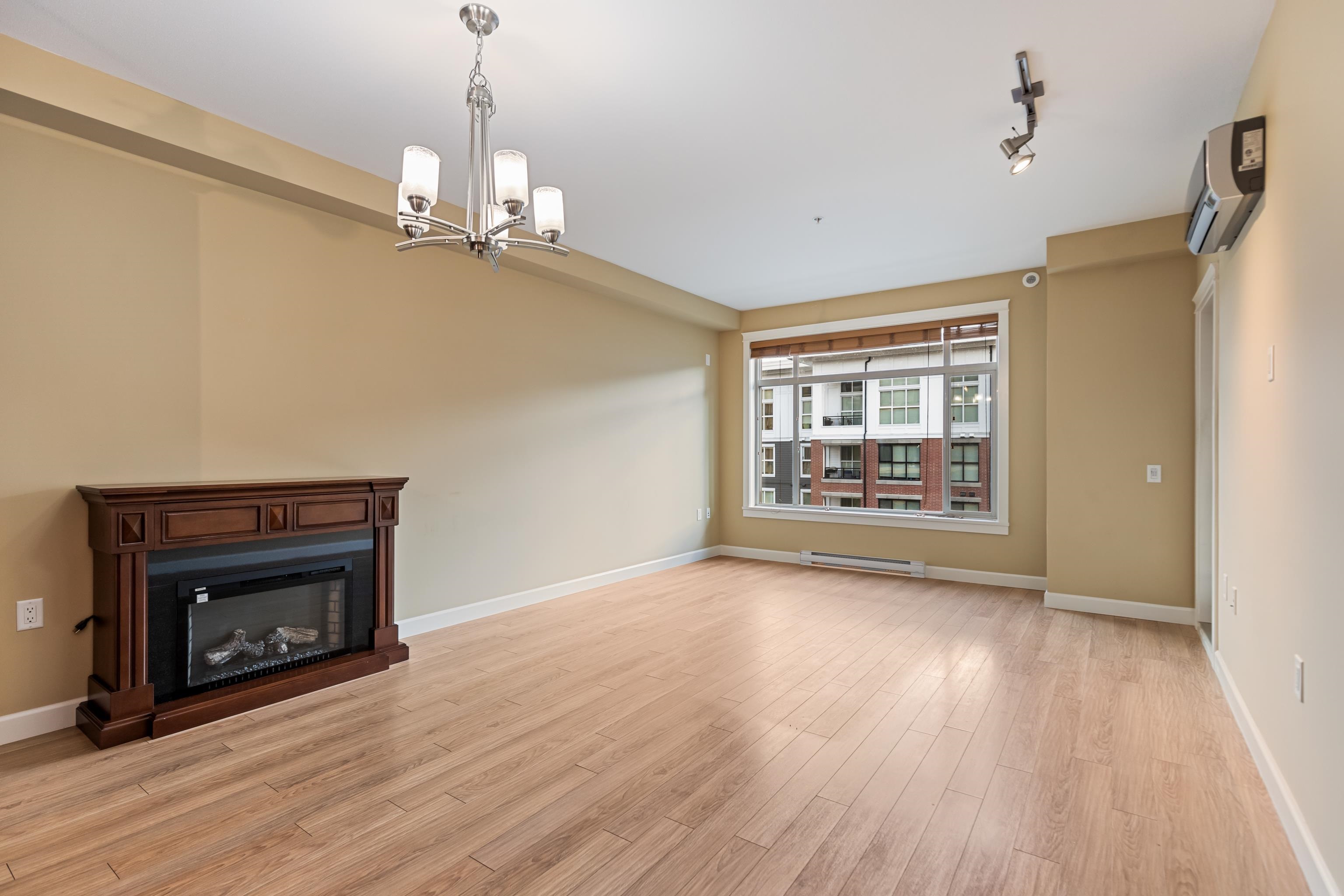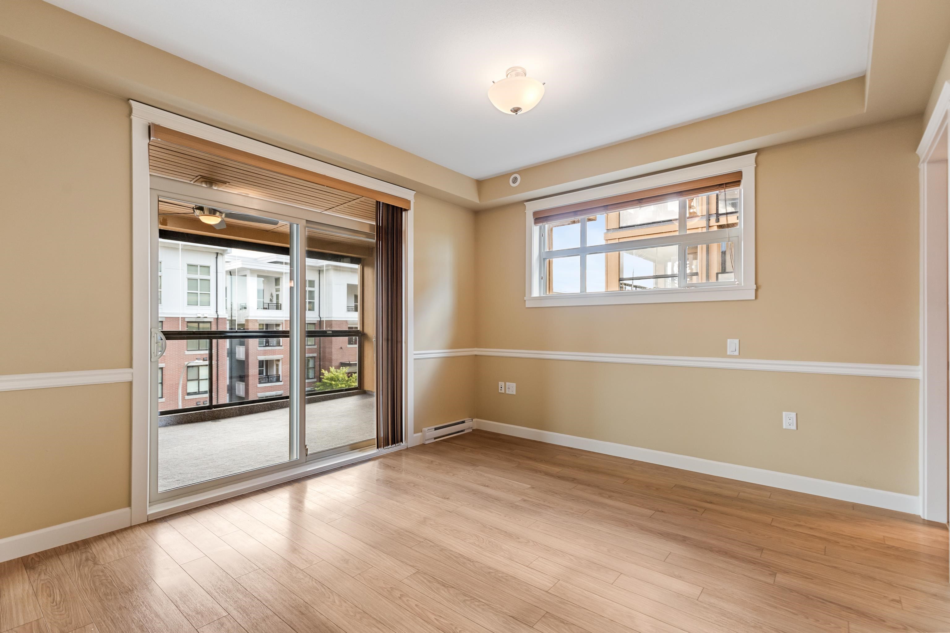 AMAZING CORNER UNIT 2 bed PLUS Den 1017 sqft condo with flexible 218 sqft fully enclosed solarium! Built by reputable developer Quadra Homes, this home boasts open concept floor plan with high end finishings and features including A/C throughout. Kitchen includes granite countertops, SS appliances, gas range with pot filler. Bathrooms outfitted with heated floors, anti-fog mirrors, granite countertops. Massive enclosed solarium off of living room usable during every season including gas bbq hook up! 2 parking with large roll up storage located in front one of the stalls. Conveniently situated in the heart of the desirable YORKSON community, walking distance to Willoughby Town Centre, Trails, Parks, transit, and much more! (note: some photos virtually staged)