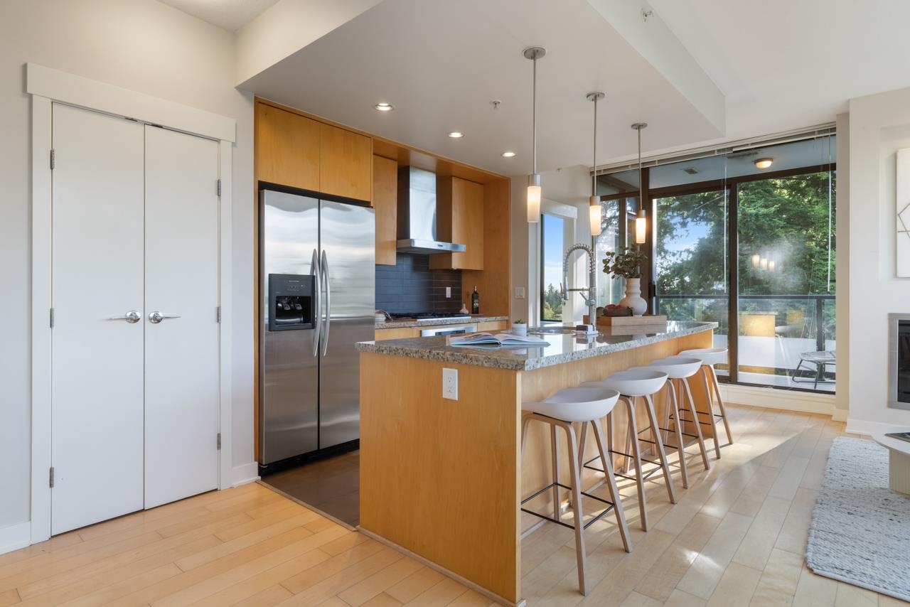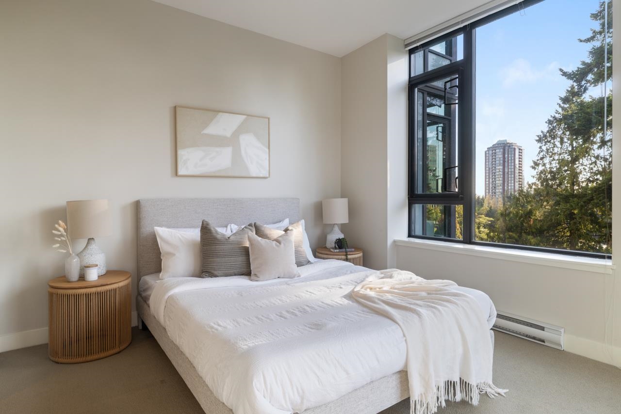 This bright north-facing 2-bed, 2-bath home at Park 360 by Cressey offers refined living with 9' ceilings and floor-to-ceiling windows that fill the space with light. The open layout is anchored by a generous island, granite counters, stainless steel appliances, a gas cooktop, eating bar, & a cozy fireplace. Generously sized bedrooms with walk-through closets open to two spacious balconies, creating effortless indoor-outdoor flow. Elevated amenities incl a fitness centre, hot tub, sauna, games lounge, & party room. Only a 3-min walk to Edmonds Station that connects you to downtown Vancouver & Metrotown, with Highgate Village and local parks within walking distance. Pets are welcome! Includes 2 PARKING & a storage locker. **OPEN HOUSE THURS OCT 9 4:30-6:30 PM**